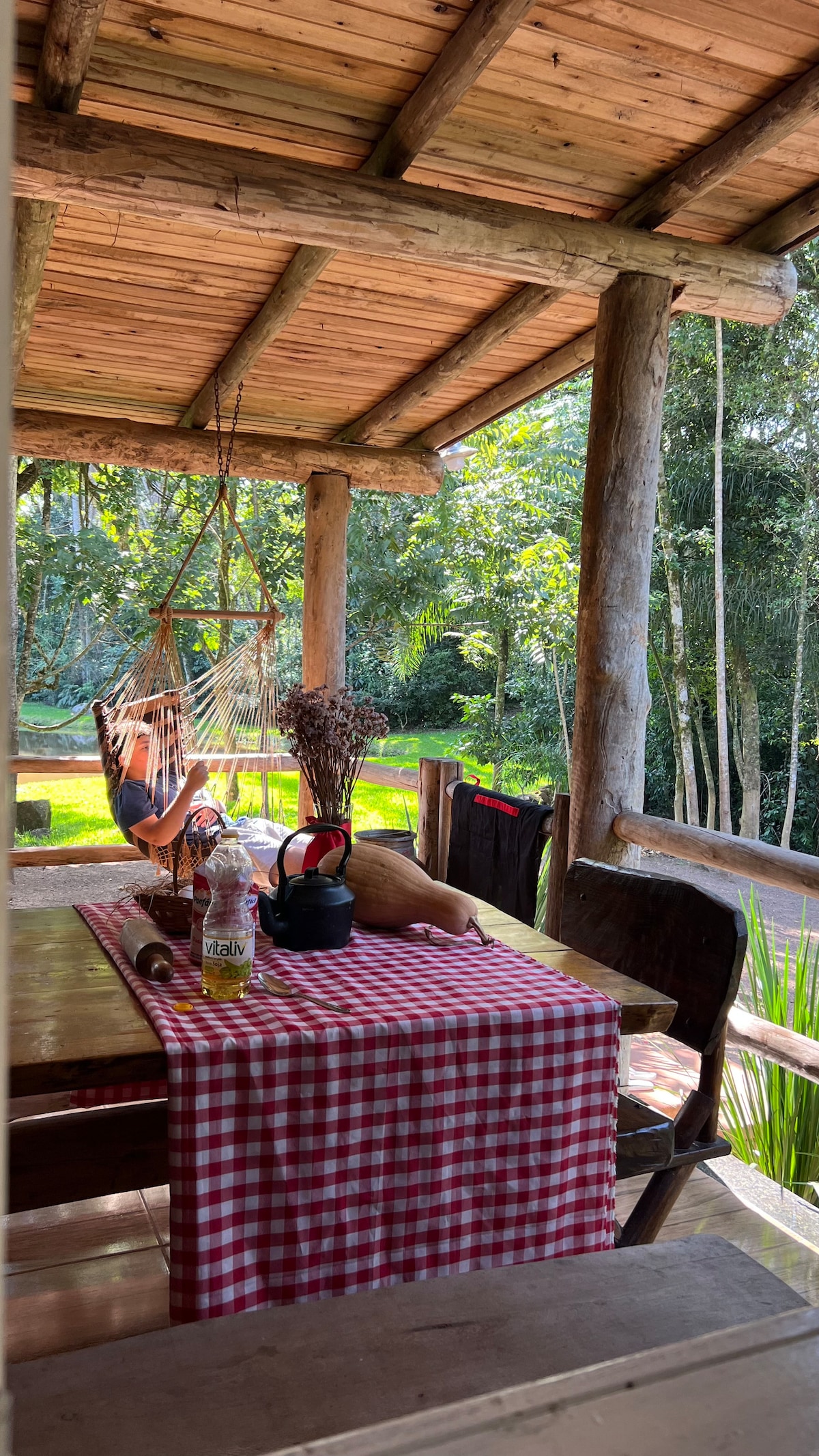 • Chalé c/2 quartos, todo equipado, climatizado, TV e Sinal de Internet. • Quiosque com Churrasqueira, fogão a lenha e todos os utensílios. • Quiosque e Deck próximo ao rio. • Escada de concreto até as águas do rio peperi guaçú. • Quando o rio está em nível normal permite andar de caiaque, relaxar nas águas cristalinas. • Pomar orgânico onde os hospedes podem colher as frutas frescas do pé. • Amplo espaço de natureza e trilhas. momentos inesquecíveis neste lugar único e ideal para famílias.