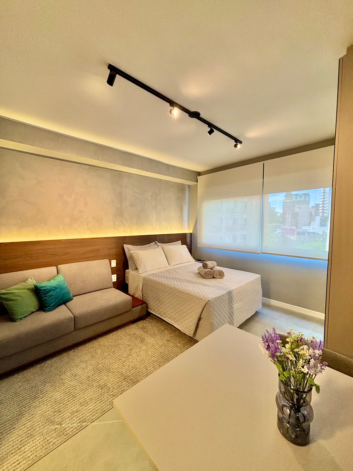 ✨ Você terá o conforto do 16º andar neste Loft com Automação Alexa, SmartTV, Lareira elétrica, Ar-Split e Cozinha equipada, Chuveiro a gás, cama Simmons (mais confortável do mundo) e Vaga de garagem gratuita incluída! Aqui você encontra: • Rooftop com vista panorâmica • Churrasqueiras • Piscina de 25m • Academia • Espaço Coworking • Portaria 24h • Lavanderia • Elevador, Garagem Proximidades: • Supermercados • Aeroporto ⟶ 25 min (carro) • PUC⟶ 4 min (a pé) • Centro, Consulado⟶ 15 min (carro)