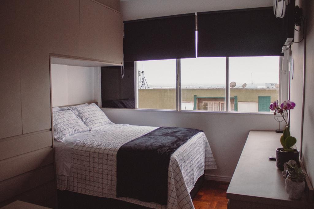 Wonderfull loft, decorated and equipped, comfortably accommodating up to 3 guests. Excellent location in POA downtown, Coliving building with conference meeting room, coworking, kitchen, living space and rooftop with grill (shared spaces). Apartment in a high floor, super cozy and fully equipped: VERY confortable Queen Size bed, sofa bed, bed & bath items, kitchen, AC, SmartTV and WiFi.