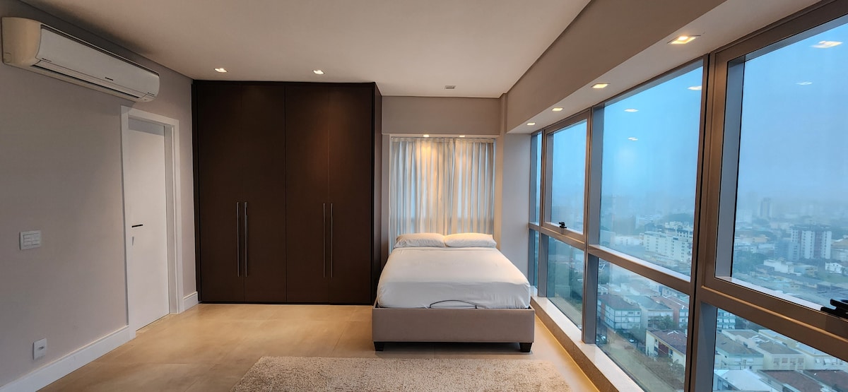 Awarded 70m2 LOFT in one of the most conceptual buildings in design in Porto Alegre, 8 minutes from the Iguatemi shopping mall. Decor inspired in Brooklyn 60's , NYC, fully furnished and ULTRA equipped, with ambient sound via amazon Alexa & various voice-controlled lighting scenarios, ultra fast fiber optic Internet (600mbps), work-station space, full kitchen, hydro for 2 people and a large infra. An experience for demanding people who seek to be surprised.