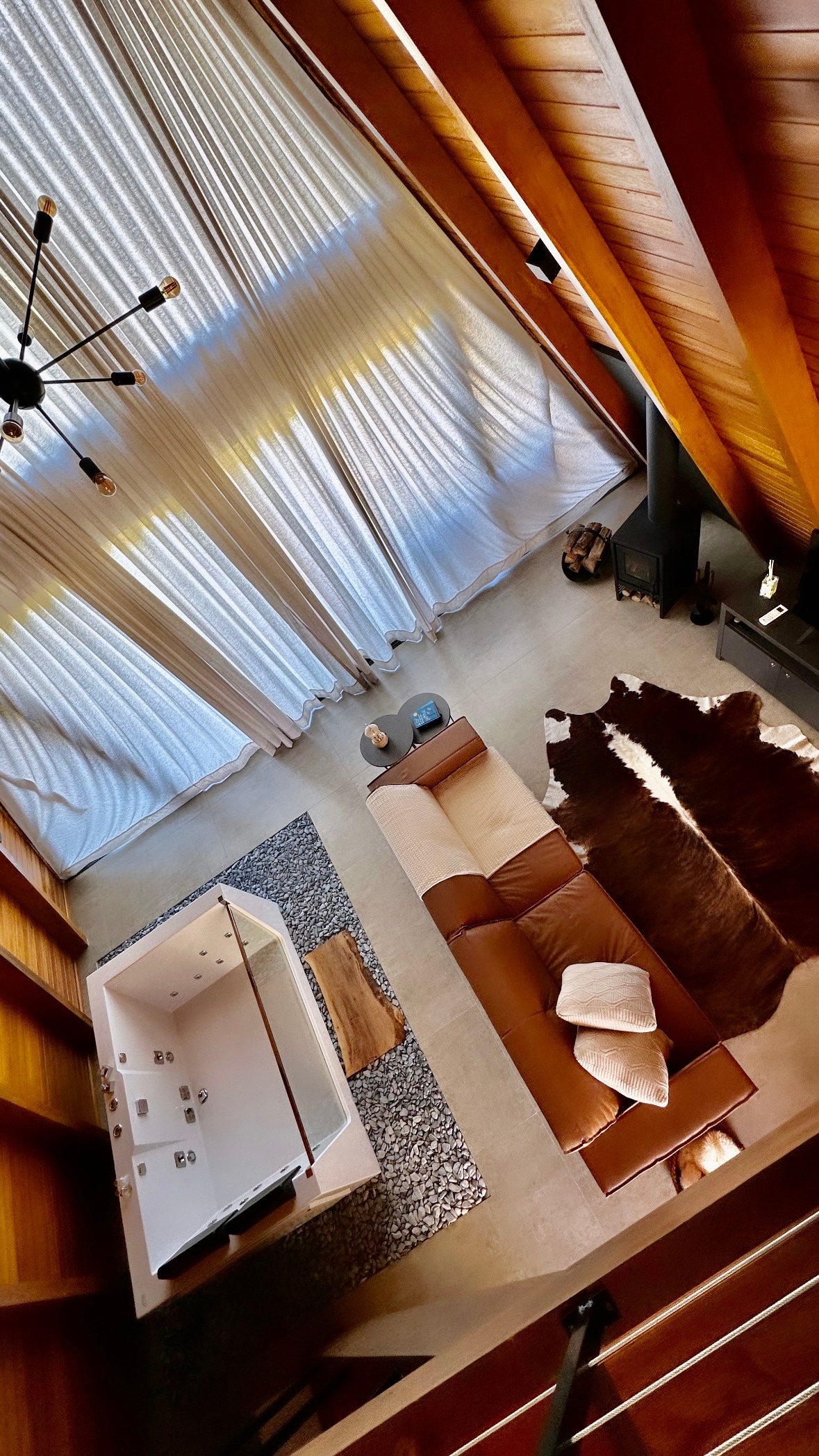 Imagine acordar com os primeiros raios de sol aquecendo suavemente os lençóis, e terminar o dia com um pôr do sol dourado visto da sacada. Com uma vista de 180°, contemple a paisagem e as araucárias nativas da região, vendo os passarinhos. O estilo rústico dá o tom, com mobília feita à mão em madeira, pensada nos mínimos detalhes para oferecer charme e conforto em cada canto. Estamos a 7 minutos do centro da cidade e a apenas 40 minutos de Gramado.
