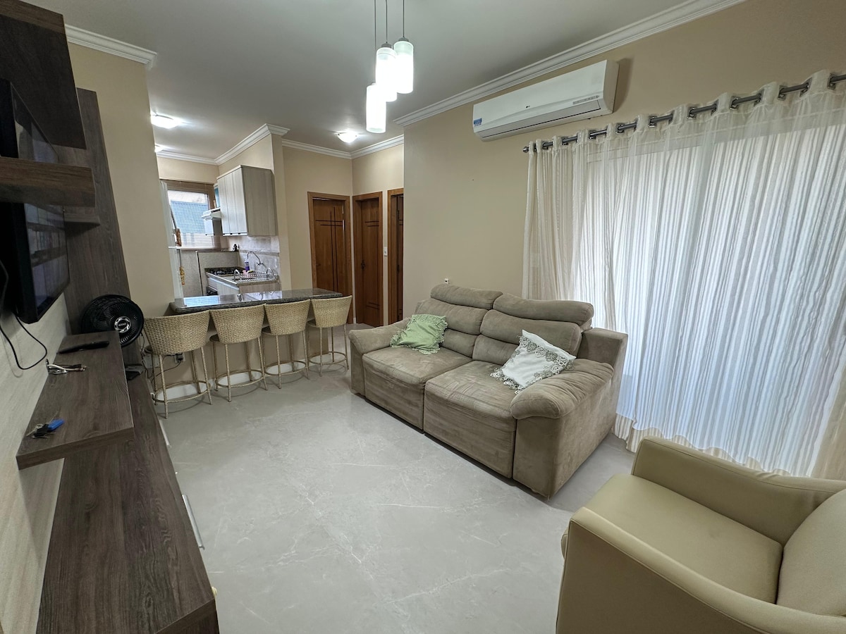 Apartamento novo com Localização privilegiada (Centro), Sala e Cozinha conjugada 02 quartos sendo um de casal e outro solteiro ambos com ar condicionado, área de serviço (Tanque), um lavabo no térreo e banheiro no piso superior