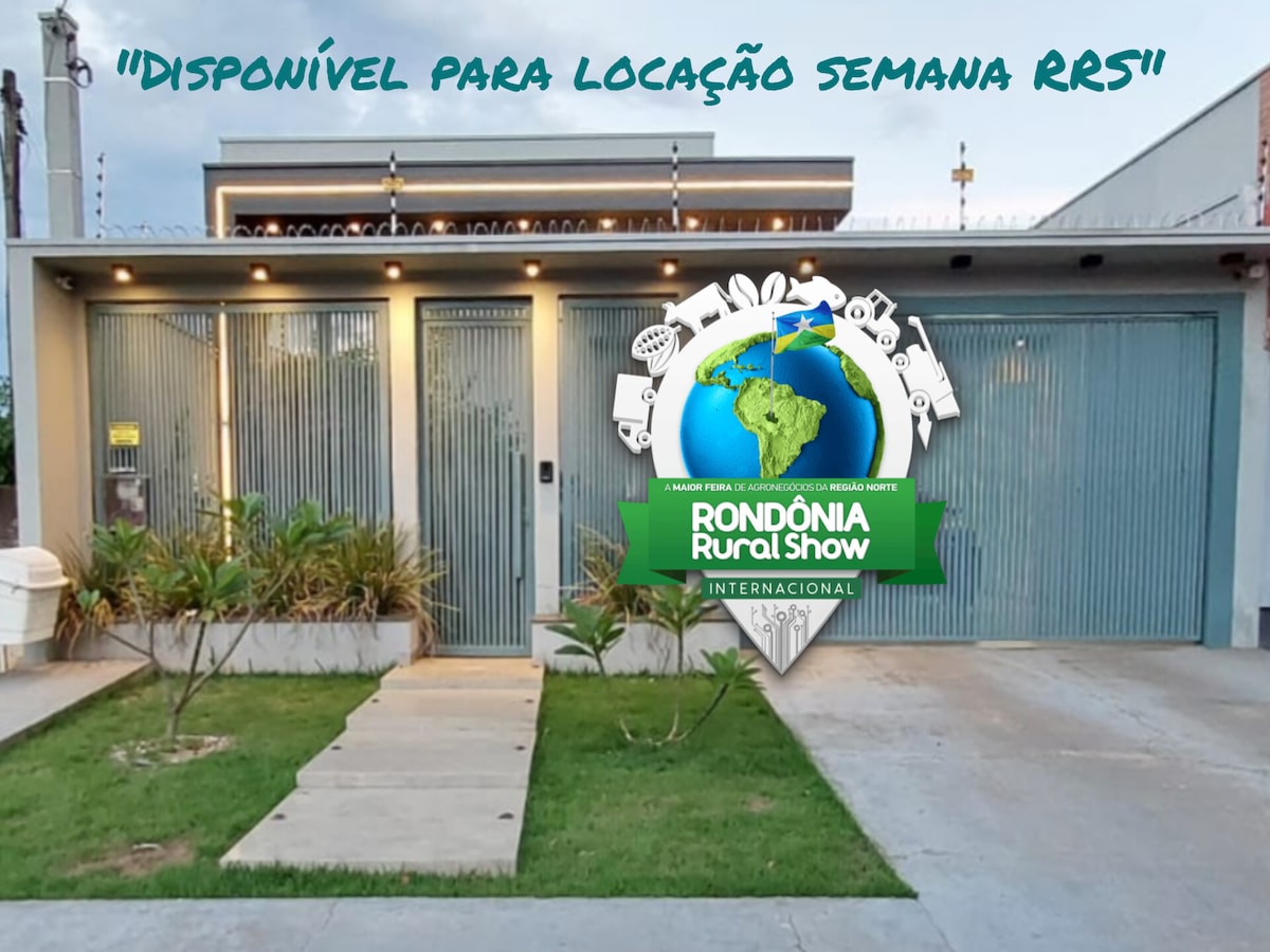 Localização central no segundo distrito de Ji-Paraná, próximo à Avenida Brasil, fácil acesso à padarias, cafés, restaurantes, supermercados, pizzarias, chopperias. Casa nova, de alto padrão, com 03 suítes completas com ar condicionado, cozinha e sala amplas com ar condicionado em todos os ambientes, área gourmet, piscina, muito espaço e conforto. TV, Wi-Fi, Netflix. Há 9 Km da Rondônia Rural Show. Ideal para empresas/grupos.