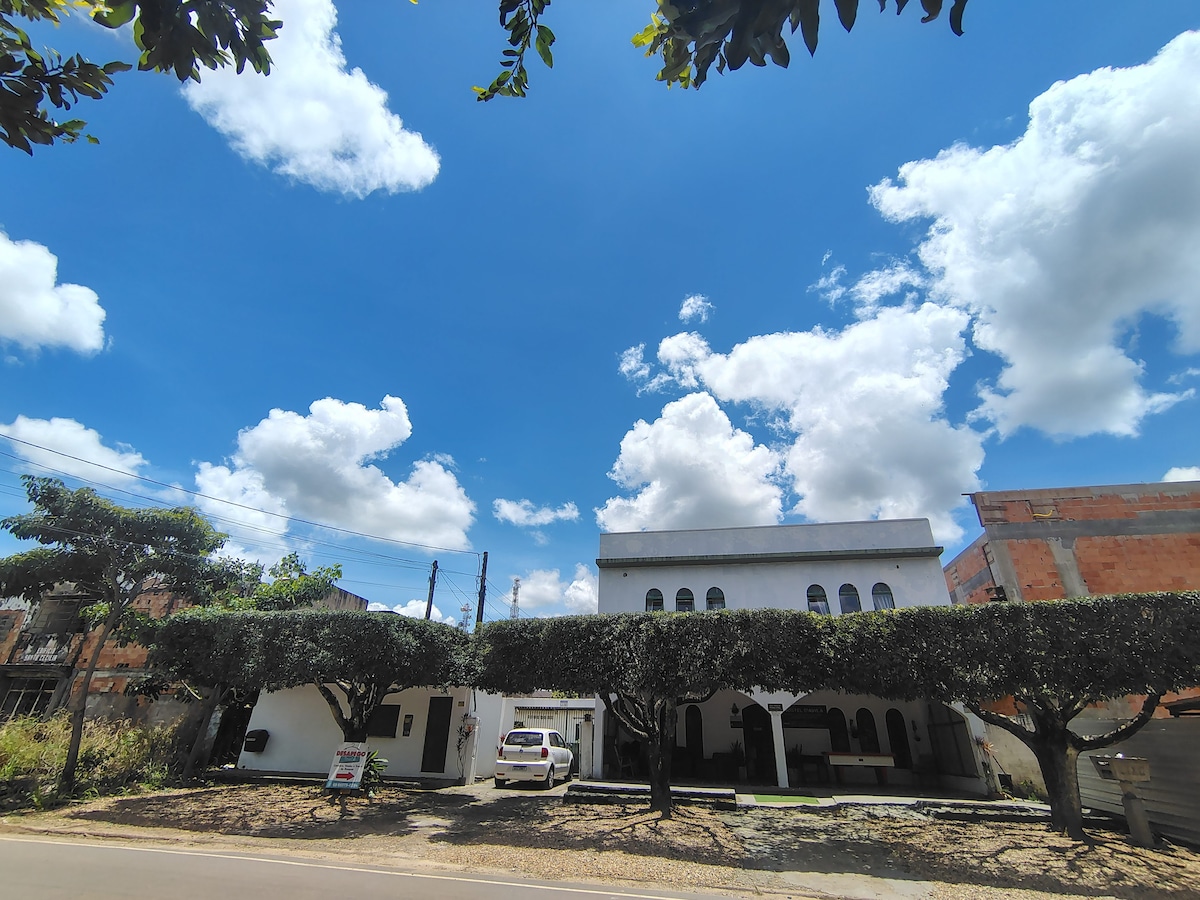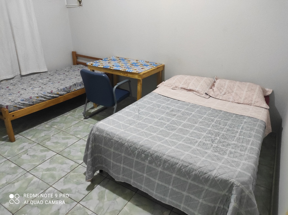 Curta uma experiência e descanse neste espaço aconchegante e bem-localizado. Um local idealizado para oferecer descanso e conforto por um ótimo custo benefício. Ideal para casal! Cama de casal Queen - se necessário temos colchão extra. Atenção: Não fornecemos toalhas de banho. O uso do ar condicionado é permitido apenas no período noturno. Sob prévio aviso, será cobrado taxa de R$ 5,00/dia para uso diurno. Por gentileza ao saírem recolham seu lixo.