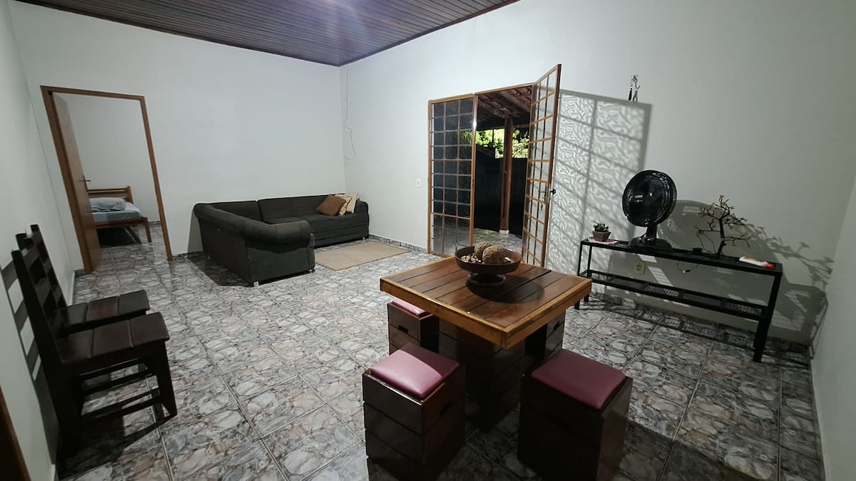 Abrace a simplicidade neste lugar tranquilo e bem-localizado. A quatro quadras da av. Brasil, próximo ao parque de exposições, perto de bancos, Farmácias, supermercados, cafeteria, lojas… Uma casa com equipamentos de segurança, murada com cerca elétrica e câmeras área externa, Wi-Fi.