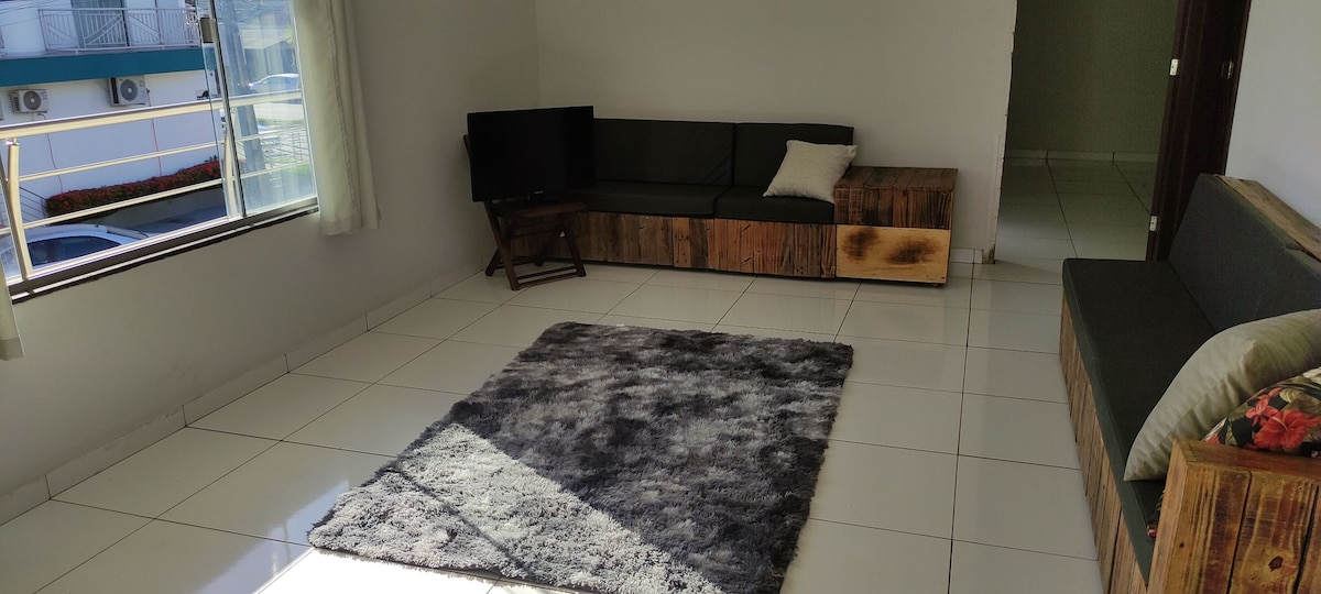 Espaço com cama de casal, colchão de solteiro extra, travesseiros, roupa de cama, toalhas de banho, guarda-roupa, frigobar, bancada de estudo, chuveiro elétrico, Wi-Fi, TV smart, estacionamento, portão elétrico, área serviço c/lavadora de roupas, ar-condicionado, varanda, puf, próximo a centro comercial da avenida Jatuarana (bancos, panificadoras, lanchonetes, loja americanas, pizzarias).
