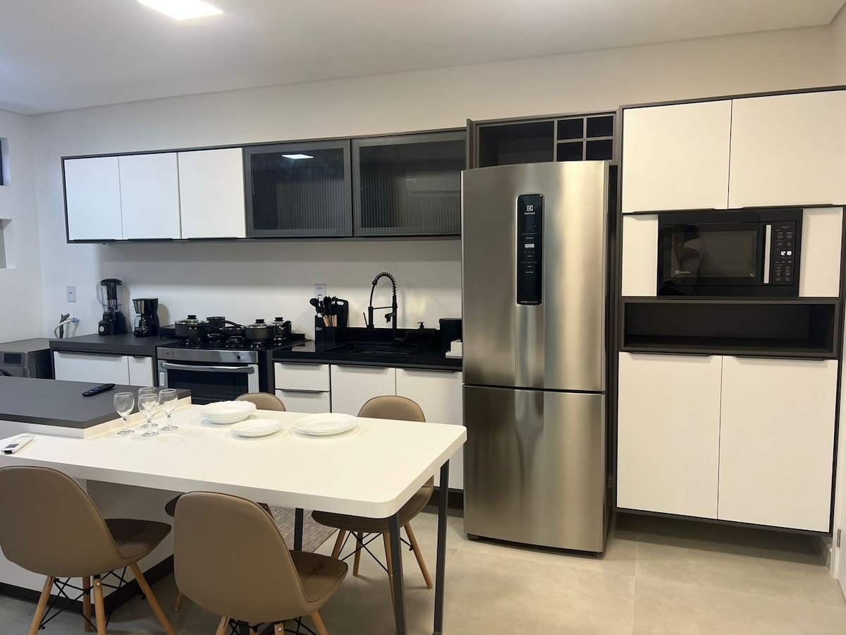 Este apartamento foi projetado para seu conforto total. Você terá 2 quartos, sendo 1 suíte espaçosa para máxima privacidade e 1 quarto adicional, ambos climatizados. Além da suíte, há 1 banheiro social completo. O coração do apartamento é a área social: a cozinha, sala de jantar e sala de estar são totalmente integradas, criando um ambiente amplo, moderno e perfeito para conviver. Para garantir seu bem-estar, todos os cômodos possuem ar condicionado.