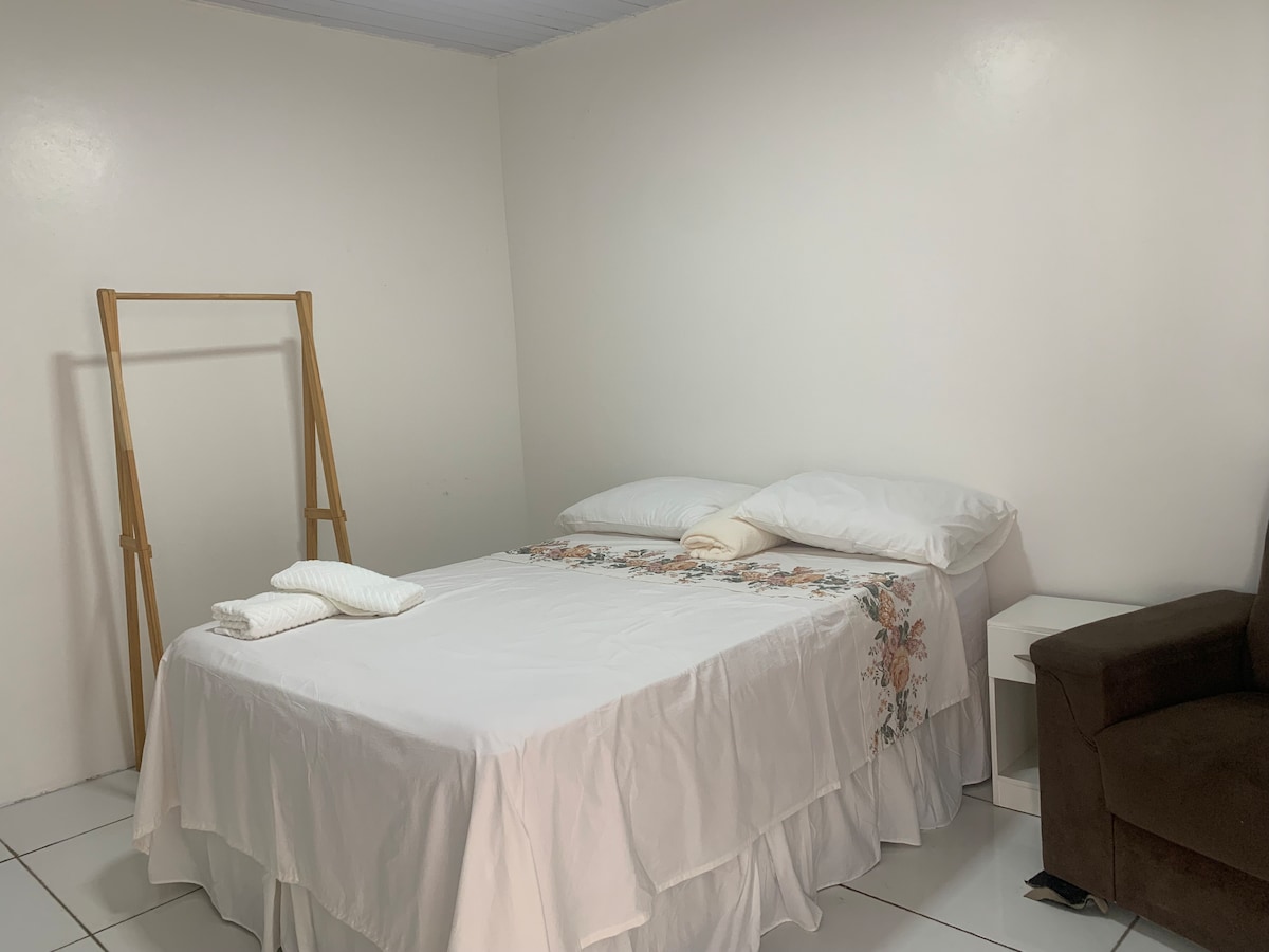 Apartamento individual, meio rústico com um espaço amplo, climatizado e confortável contendo: Uma Cama box casal, hack, TV Smart 43", arara de madeira com sapateira, armário pequeno. Mesa com cadeiras, frigobar, armário com utensílios doméstico, fogão elétrico (2 bocas), micro-ondas, panela air fryer, sanduícheira e liquidificador. Contém wi-fi e fica bem localizado, estando a uns 5 minutos do Aeroporto Int de Boa Vista, próximo de supermercado, farmácias, academias, faculdades, jornais, etc...