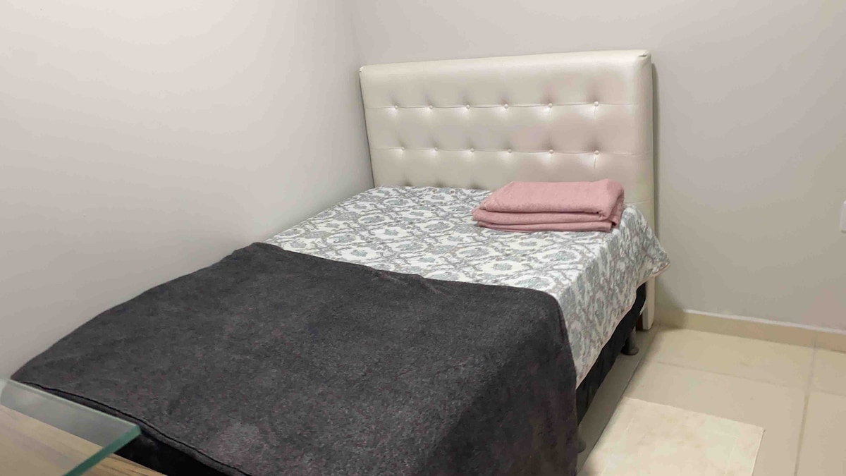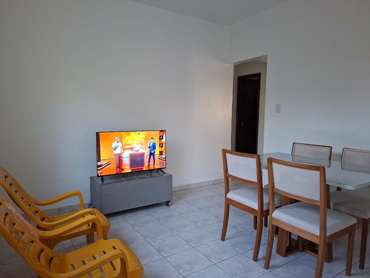 Este é um apartamento de 2 quartos totalmente mobiliado com cama de casal em cada um dos quartos, sala de estar, jantar, uma cozinha privada, banheiro e um quintal. Adequado para dois casais ou empresários. Camas extras de solteiro e cama de casal estão disponíveis a uma taxa de 30 e 50 reais, respectivamente, por noite. Adequado para 2 a 8 pessoas. Com 100% de segurança.