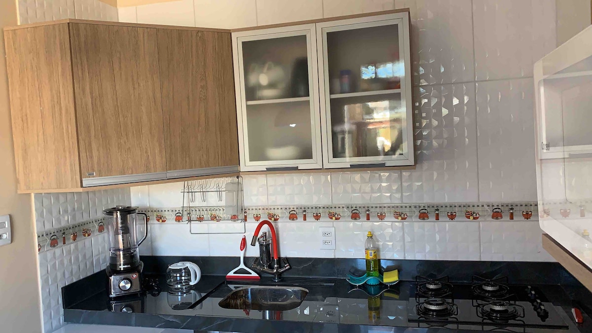APARTAMENTO MODERNO E ACONCHEGANTE, LOCALIZADO NO CENTRO DA CIDADE. O APARTAMENTO CONTA COM CAMA QUEEN, GUARDA ROUPA, ESCRIVANINHA, RACK, PAINEL, LENÇÓIS QUATROCENTOS FIOS, TOALHA DE BANHO E ROSTO, SECADOR DE CABELO, VAPORIZADOR, TV SMART 50 POLEGADAS 4 K, CENTRAL DE AR, CHUVEIRO ELÉTRICO, MESA QUATRO CADEIRAS, COZINHA PROJETADA, E EQUIPADA COM LOUÇAS, LIQUIDIFICADOR, CAFETEIRA ELÉTRICA, SANDUICHEIRA, TALHERES TRAMONTINA, FOGÃO COOKTOP, GELADEIRA E MICROONDAS.