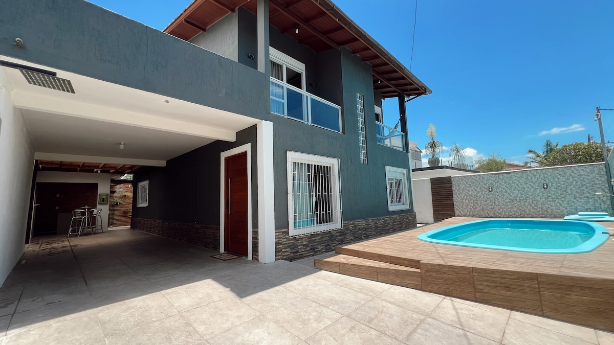 Oferecemos uma casa com piscina numa área super valorizada a 300m dos pontos mais importantes da praia, 6 minutos caminhando. São 4 quartos (2 suítes) 4 banheiros, lavabo, Ar condicionado em todos os cômodos (inclusive áreas comuns), churrasqueira, lareira, garagem para 2 carros. Amplo pátio interno ajardinado e com piscina onde se pode desfrutar verdadeiramente da vida ao ar livre. Temos experiência de mais de 15 anos em locação. Aqui todos são bem vindos.