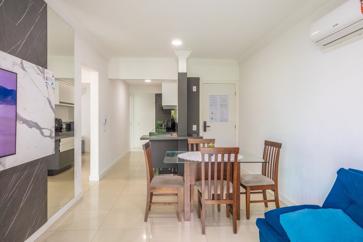 Apto aconchegante novo super bem localizado em Joinville, próximo ao aeroporto (1,8k +- 3 min), Garten Shopping (5k +- 10min), Fort Atacadista (1,5k 4min), está a 8,5k do Centreventos Cau Hansen, padarias, farmácia e lojas em geral. • Apartamento com cozinha bem equipada com eletros, lavanderia com máquina de lavar, churrasqueira na sacada, todas as janelas com tela para segurança de crianças, 2 sacadas, internet wifi e tudo decorado especialmente para recebe-los! Ponto de ônibus em frente