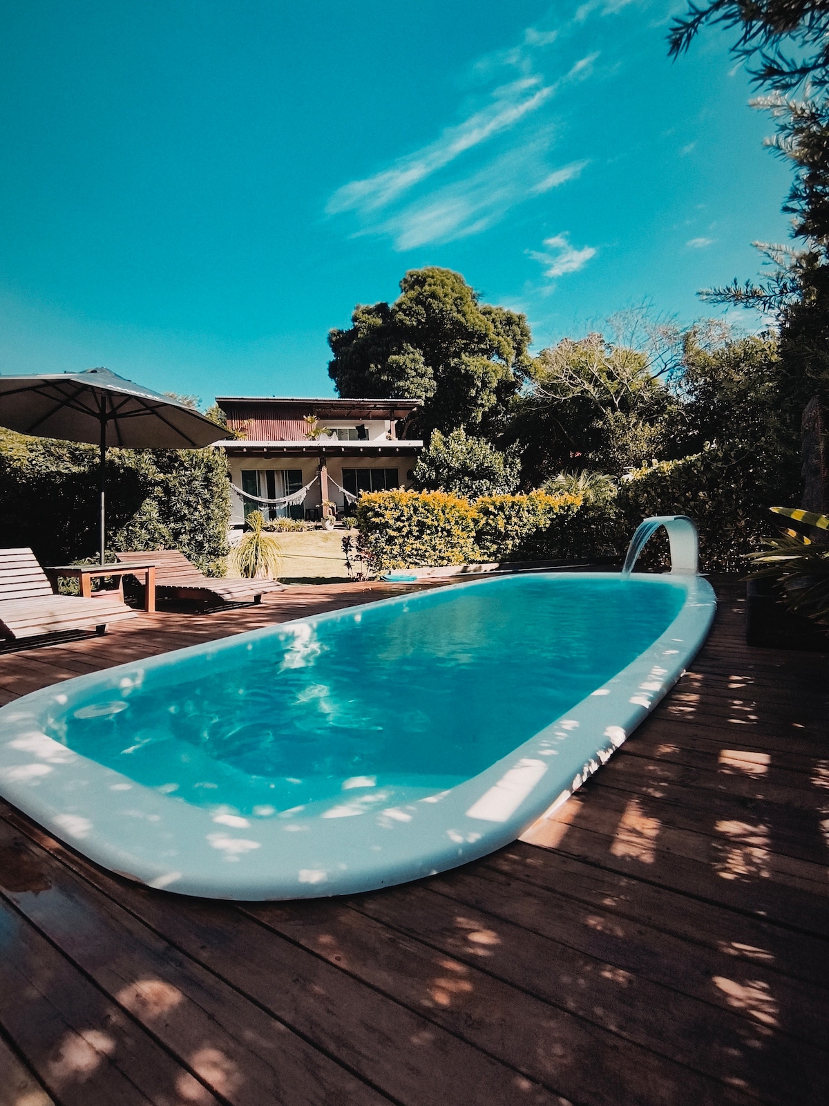 The Bora Bora studio is a complete accomodation for couples, with two stores, complete privacity and all the amenities needed for a perfect stay. Suite master with jaccuzzi pool, ar conditioned, smart TV and sea view, bathroom with central gas shower, deck with barbecue and hammock, complete kitchen, a small living and garage for your car.