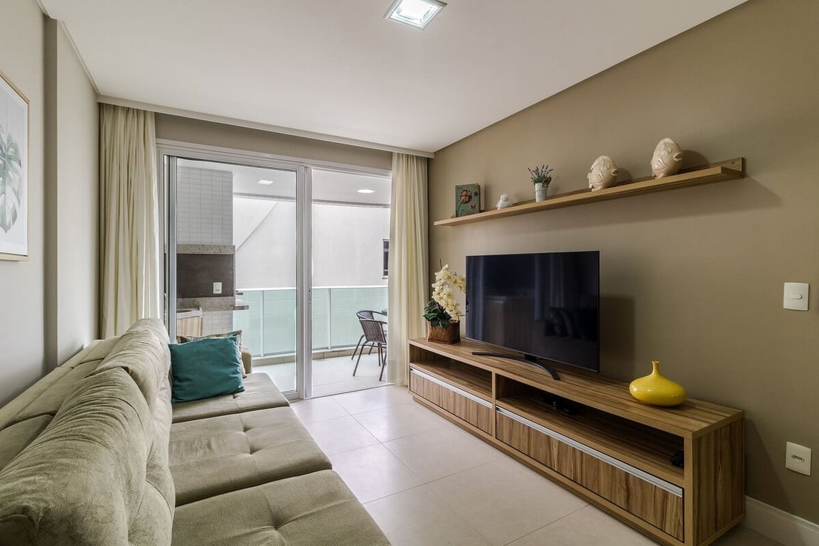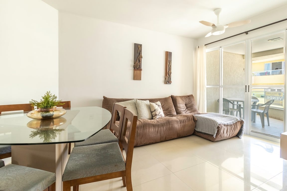 Na sala há um sofá cama, que acomoda confortavelmente 2 pessoas.