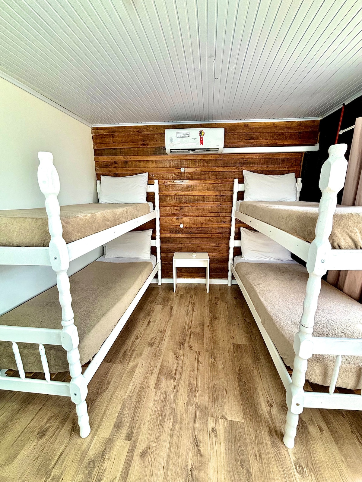 quarto coletivo Misto no Quatro Ilhas Beach Hostel (você irá dividir o quarto com outros hospedes do gênero masculino e feminino), camas beliche em quarto com lockers individuais e ar acondicionado. Estrutura completa com 3 banheiros masculinos e 3 banheiros femininos, sala, cozinha varanda e churrasqueira, 40 metros do mar, possuimos tambem quartos privativos.