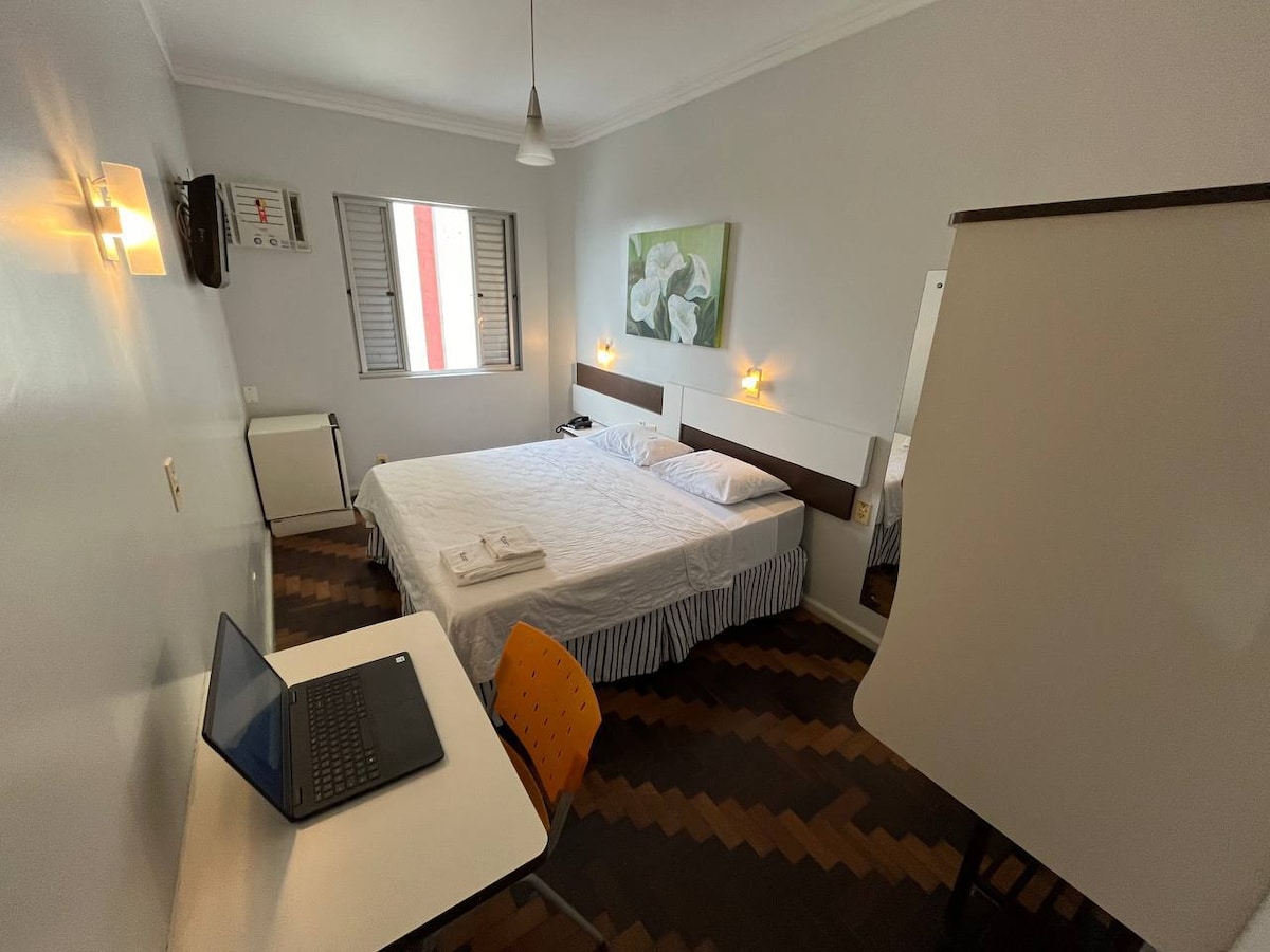 Suíte com cama de casal no charmoso Hotel Boutique Ayni! - Café da manhã incluído; - Área central na melhor localização da cidade! - Banheiro privativo com aquecimento a gás; - TV Smart 32" com assinatura Netflix e Globo Play Premium; - Frigobar; - Ar condicionado; - Secador de cabelo; - Cozinha para os hóspedes; - Área social e espaço para escritório; - Maravilhoso jardim para momento de relaxamento ou trabalho; - Lavanderia completa disponível (opcional); - Estacionamento mediante reserva.