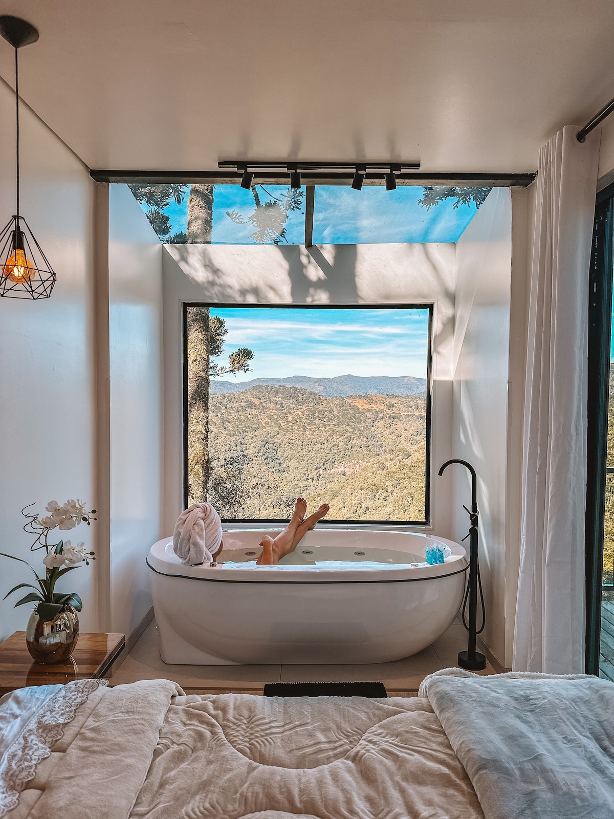 Um refúgio exclusivo que combina conforto, charme e contato direto com a natureza. Ideal para quem deseja viajar e se sentir em casa, nosso espaço oferece comodidades de alto padrão em meio a um cenário calmo, privativo e envolvente. Aqui você encontra o equilíbrio perfeito entre descanso, romantismo e bem-estar, com uma vista privilegiada para as montanhas que torna cada amanhecer inesquecível. A proximidade de belas cachoeiras convida a explorar, relaxar e viver momentos únicos e memorável.