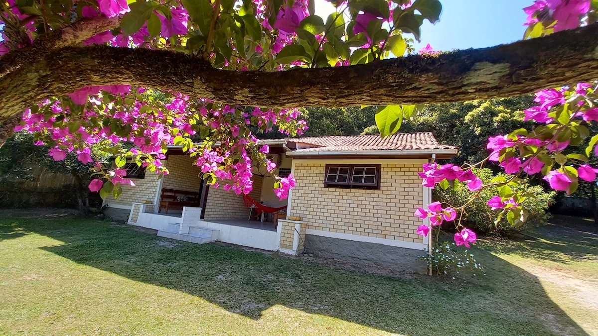 Aproveite uma casa nova geminada, finalizada em 2019, à 5 minutos a pé da praia de Canasvieiras e com muitas facilidades: mercado ao lado e também um open shopping com lojas e lanchonetes. A casa é decorada em amarelo com telas e grades nas janelas e portas para sua segurança, possui um Ar Condicionado 18000 BTU que mantém o calor do verão afastado! Tem churrasqueira e estacionamento. Nascida na ilha, tenho ótimas dicas sobre a região.