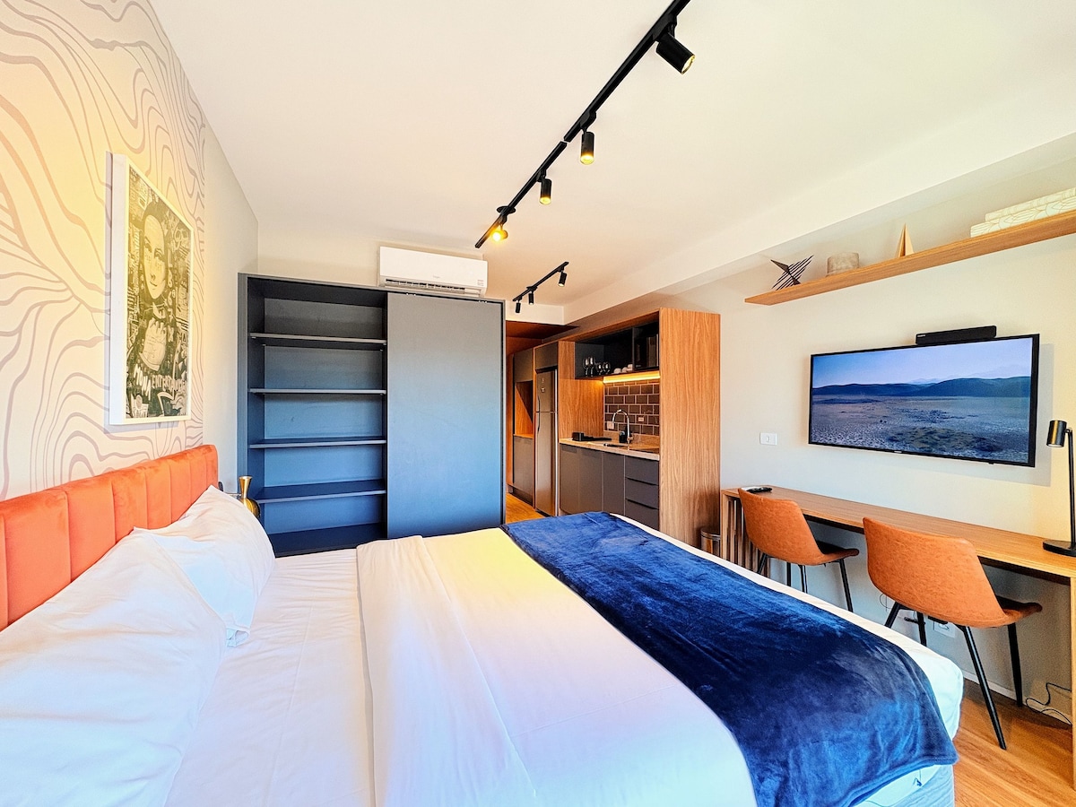 Studio de Luxo na Rua Oscar Freire Moderno, sofisticado e completo, na rua mais famosa de São Paulo pelas lojas de luxo. Studio no 24º andar, de frente, com vista magnifica para Av Paulista. Bem equipado, com TV 55 polegadas, Wifi Internet Vivo Fibra 200, TV a cabo, Ar Condicionado silencioso, Cafeteira, Cooktop e Frigobar, Cortina black-out automatizada, Vaporizador de roupa portátil, Utensílios de cozinha, Secador de cabelo, Lençóis e Toalhas macios, sabonete e kit shampoo/condicionador.