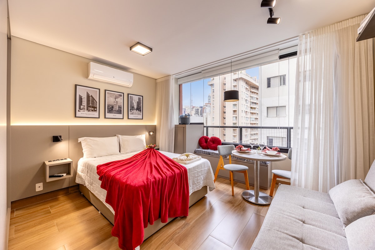 In the heart of São Paulo – Jardins – the Studio is located between Rua Pamplona and Av. Paulista. The building has a pool, gym, gourmet area, co-working area, and Omo laundry facilities. Within a 2-minute walk, you'll reach São Paulo's main metro station: Trianon-Masp. Right downstairs there are two supermarkets and a fresh produce market, along with a Smart Fit gym. There are lots of restaurants and cafes in the area, and MASP and Cidade São Paulo Shopping Mall are just a 5-minute stroll away.