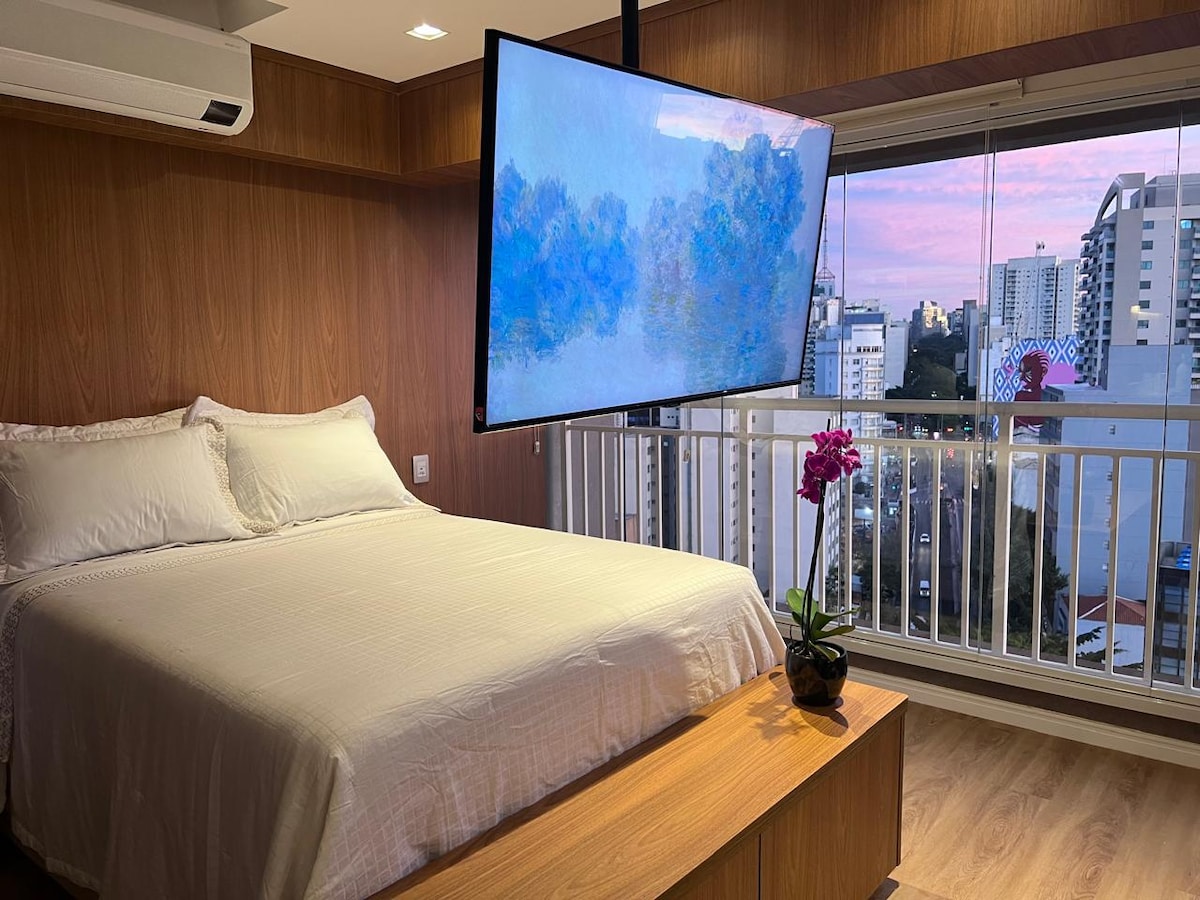 Studio de Luxo na Rua Oscar Freire Moderno, sofisticado e completo, na rua mais famosa de São Paulo pelas lojas de luxo. Studio no 24º andar, de frente, com vista magnifica para Av Paulista. Bem equipado, com TV 55 polegadas, Wifi Internet Vivo Fibra 200, TV a cabo, Ar Condicionado silencioso, Cafeteira, Cooktop e Frigobar, Cortina black-out automatizada, Vaporizador de roupa portátil, Utensílios de cozinha, Secador de cabelo, Lençóis e Toalhas macios, sabonete e kit shampoo/condicionador.