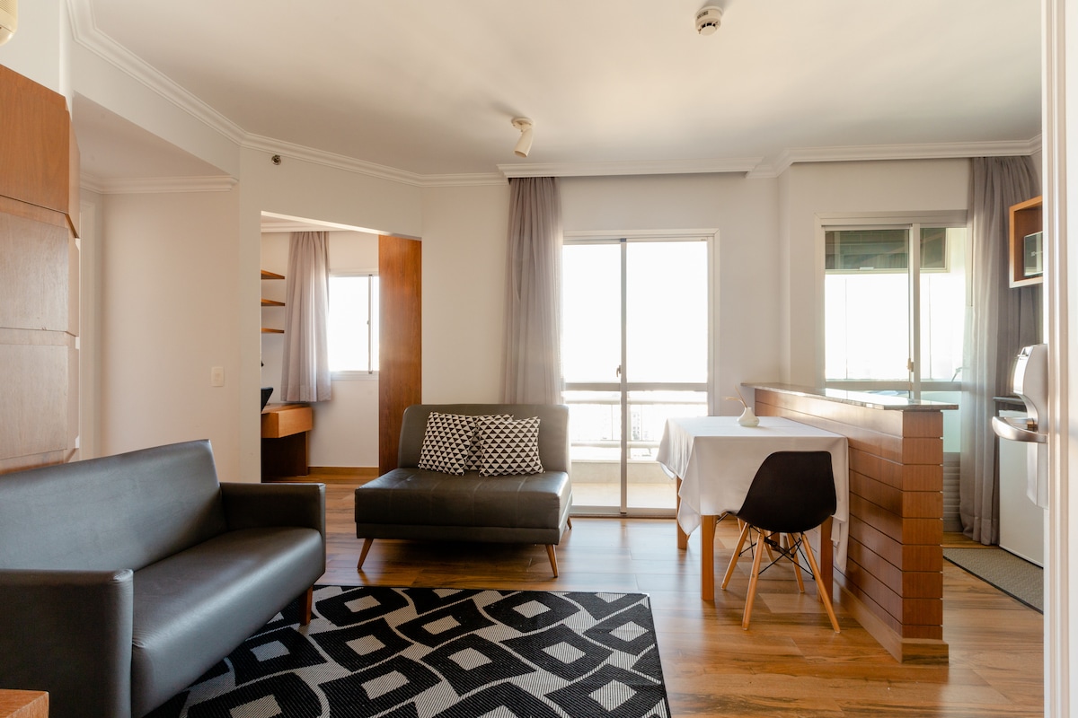 Enjoy the bohemian and artistic Vila Madalena, full of bars, restaurants and cafes. You can get to know the region or even take a tour to city parks with a bike, avaiable free of charge. Will you come to work? Focus on it at the confortable table facing the green balcony with a beautiful view of the tree tops. After all, enjoy the gym, poll, sauna and snooker room for your complete leisure.