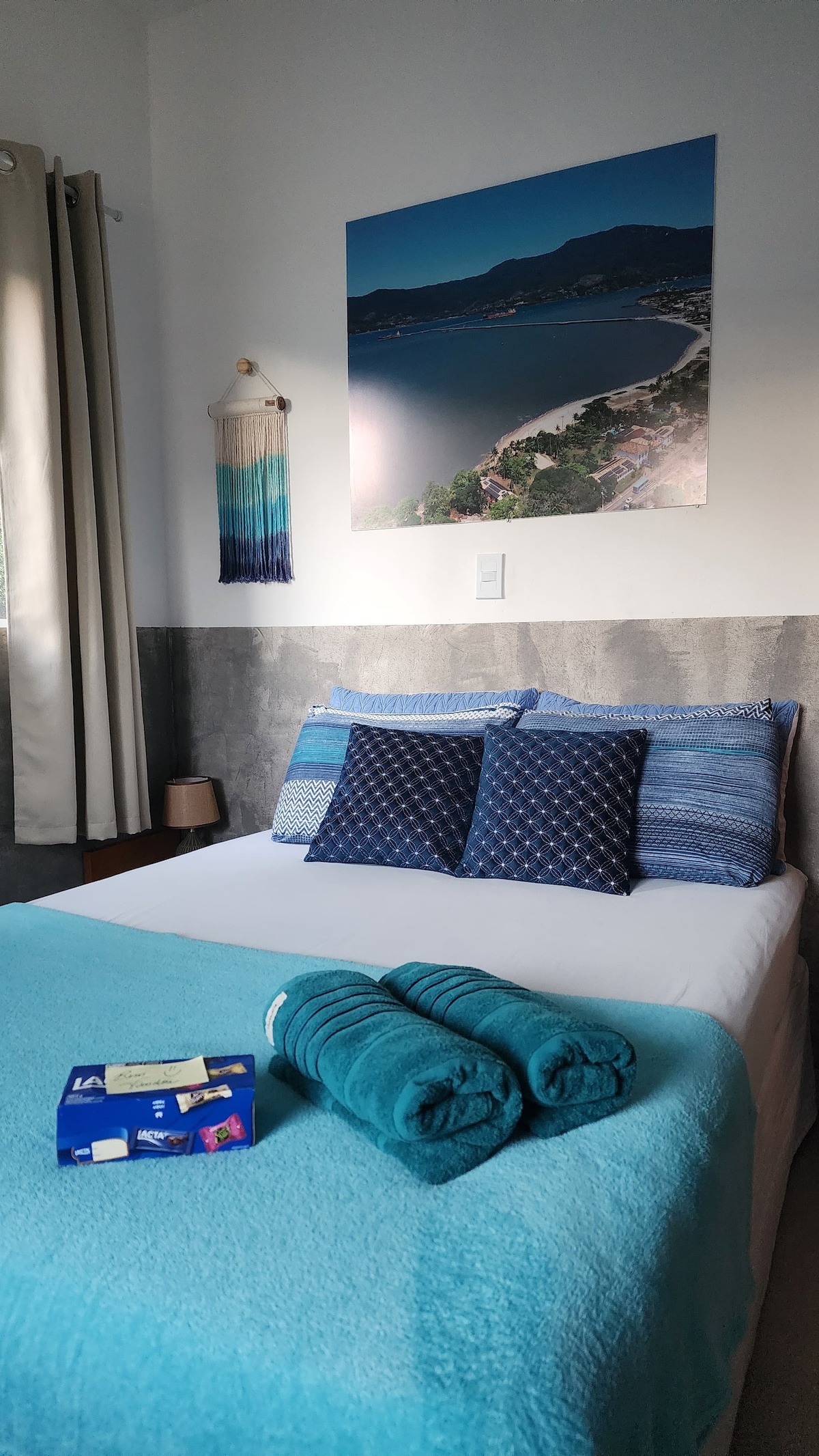 A place with the most incredible view of the sea, views of Flamengo Bay, Anchieta Island, Santa Rita Beach, Lamberto, Ribeira and others… With a private trail in the Atlantic Forest, 2 incredible viewpoints, small waterfalls with crystal clear water! With security and privacy, the Greece-themed house has a comfortable and structured 300m2, airy and fresh and with new air conditioning in all bedrooms. The closest beach is Lamberto Beach, you have to walk 400m, but we recommend going by car!