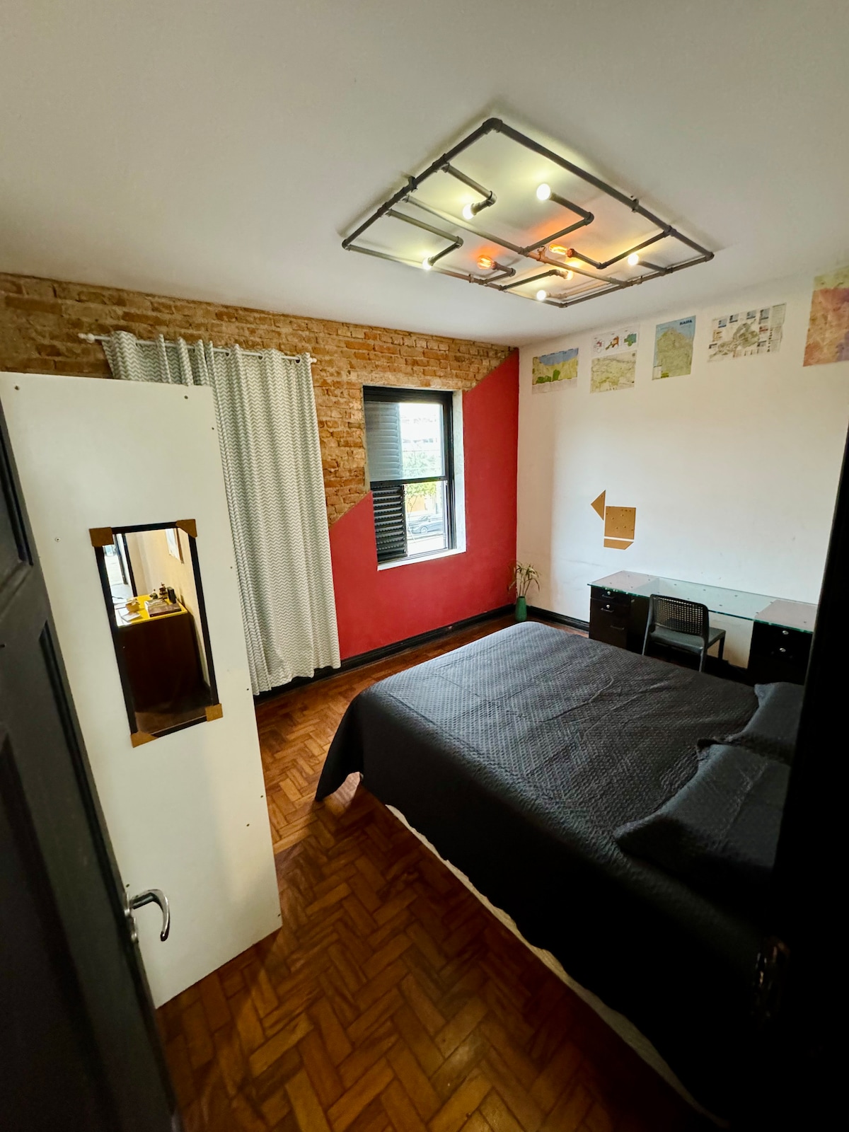 Relax in a cozy double bed and enjoy a peaceful night's sleep in a quiet and welcoming environment. For your convenience, we provide bed linen and towels, so you can travel light and in comfort. The suite has a private bathroom, ceiling fan, and a Smart TV, perfect for binge-watching your favorite series or watching a good movie after a day exploring São Paulo. Ideal for couples, solo travelers, or anyone looking for their own space to rest in comfort.
