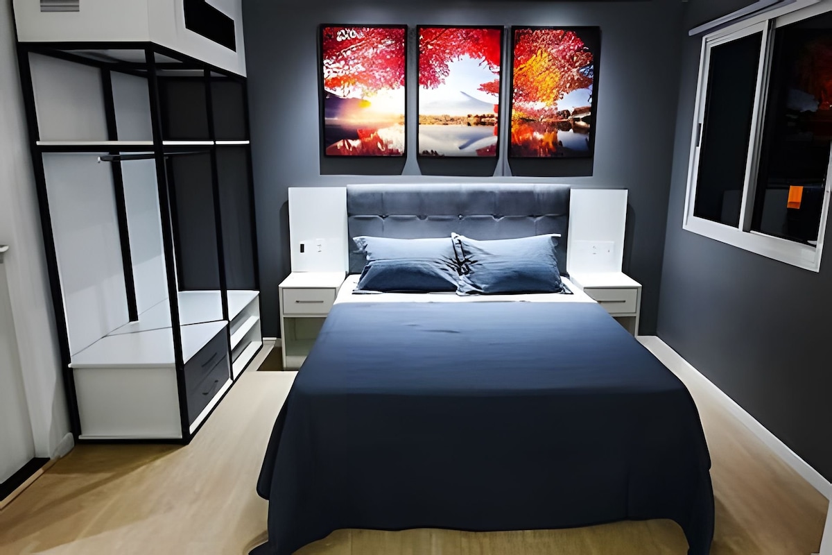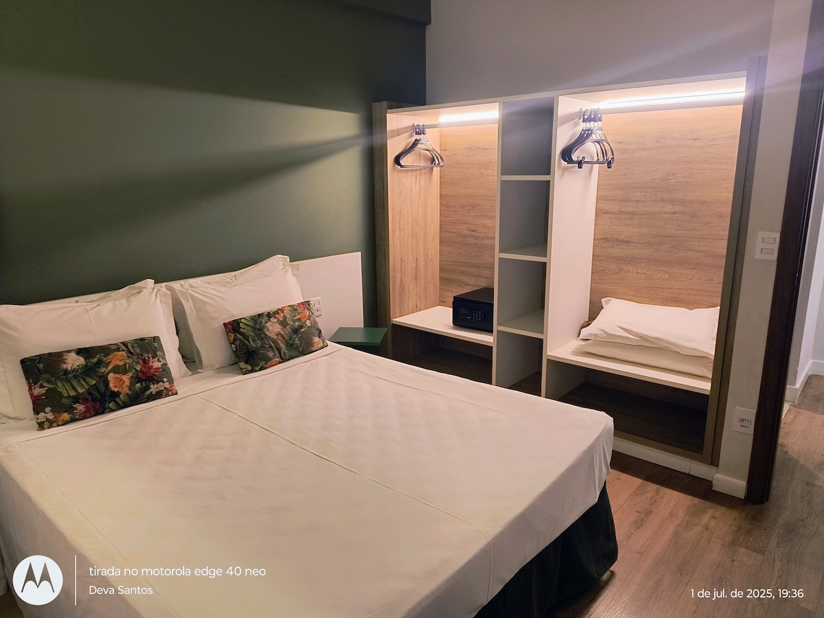Flat completo no coração de Alphaville, ideal para trabalho ou descanso. Ambiente moderno e aconchegante, com cama queen, TV, ar-condicionado e mesa de trabalho. Cozinha americana equipada com cooktop, micro-ondas e frigobar. Banheiro amplo com bancada em mármore e box de vidro. Inclui garagem coberta e Wi-Fi. Localização privilegiada, próxima aos principais centros de eventos, shoppings e restaurantes da região.