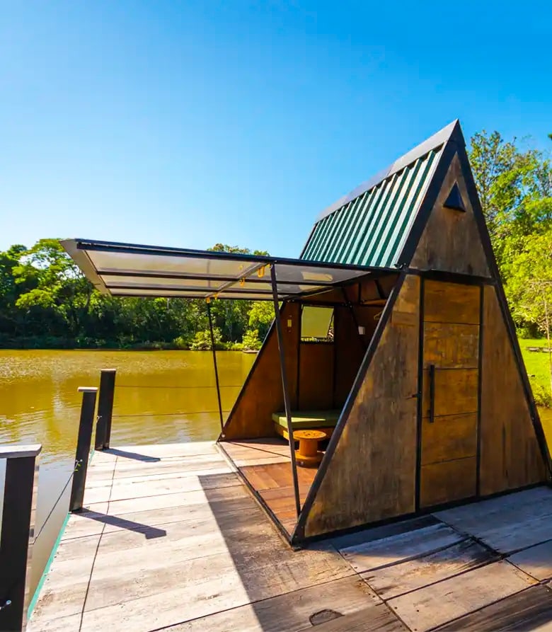 Este lugar único e cheio de estilo é o cenário ideal para uma experiência inesquecível. Em uma cabana, no meio de um lago, você dormirá ouvindo os sons da natureza e será acordado pelos peixes!