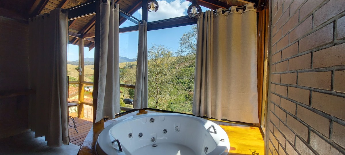 Casa Tempo: O seu Tempo de conexão com a natureza. Mergulhe na tranquilidade, contemple as colinas e recarregue-se com a vista deslumbrante ou com enxoval de algodão egípcio. Aqui, num ambiente exclusivo o tempo serve para reencontrar a essência e criar memórias. Somos um projeto familiar e vivemos no local. Nossa propriedade é fechada e a cabana é cercada, ideal para relaxar em segurança, sem abrir mão do conforto. Seu pet é bem vindo aqui. Insta: @tempomantiqueira