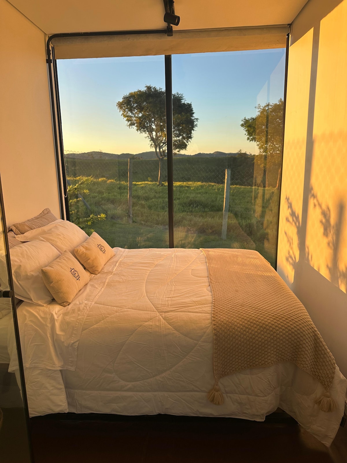 A Cabana de Vidro une minimalismo contemporâneo e aconchego em hospedagem exclusiva. Com vista panorâmica incrível, oferece luz natural durante o dia e céu estrelado à noite. Conta com cama queen, smart TV 50”, cozinha completa e jacuzzi de imersão posicionada estrategicamente para aproveitar a paisagem. Perfeita para casais que buscam escapada romântica ou para quem quer desconectar da rotina e se reconectar com a natureza. Um refúgio inesquecível para momentos únicos. @cabanadaarvore
