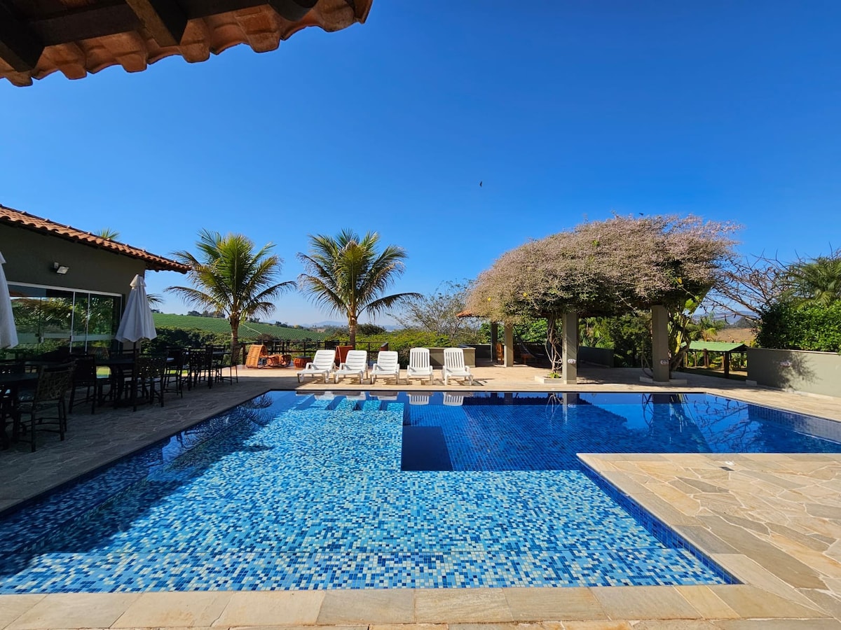 Chácara com piscina em frente à represa! Possui forno de pizza, área de fogueira, parquinho para as crianças, redário, salão de jogos e um grande quiosque para eventos com uma enorme churrasqueira. O anúncio é para até 16 pessoas, mínimo de 2 noites, acima disso há adicional. Não fornecemos roupa de cama, travesseiros ou toalhas. Insta: @casaretroeventos Maps: Casa Retrô