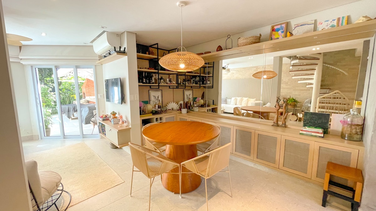 Charming and carefully decorated, our house offers all the comforts for your stay in Paraty. There are 3 suites equipped with air conditioning and good quality bed linen and towels. The fully equipped kitchen is integrated into the living room and the internal garden, creating a cozy environment, perfect for relaxing with your family. Located in the historic center, on a central st, with the convenience of getting close to the house by car to facilitate the transportation of people and luggage.