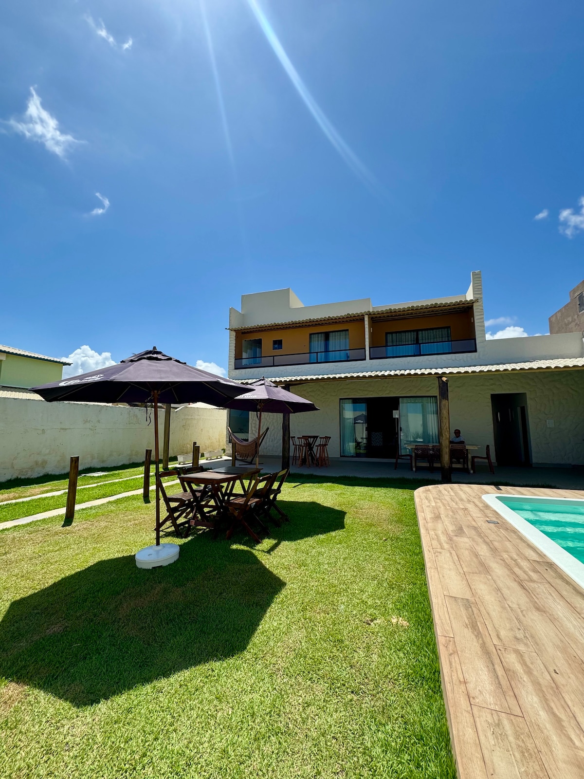 Casa linda de praia (Aprox. 200 metros), apenas 03 minutos de caminhada arborizada até a praia. O Condomínio possuí piscina (adulto e infantil), quadra de futebol gramada, playground...tudo isso munido ao barulho incessante e totalmente prazeroso do mar. Tudo muito bem limpo e agradável, uma escolha ideal para quem quiser curtir um momento memorável em família. Venha desfrutar de bons momentos. Vigilância no local 24 horas, além da casa possuir grades para serem utilizadas de forma opcional.
