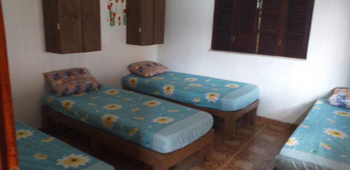 A pousada conta com 11 quartos, 08 solteiro e 02 de casal, 01 suíte, 02 cozinhas, 02 lavanderia 01 interna e outra externa, área de lazer ventilada com poltronas e redes. Melhor preço da região, dormida com e sem café da manhã. Os preços estão descritos abaixo: Quarto individual uma cama solteiro: 60,00. Quarto duas camas solteiro: 95,00. Quarto quatro camas solteiro: 140,00. Quarto cama de casal com banheiro privativo e tv: 140,00 Quarto cama de casal e uma cama de solteiro: 130,00.