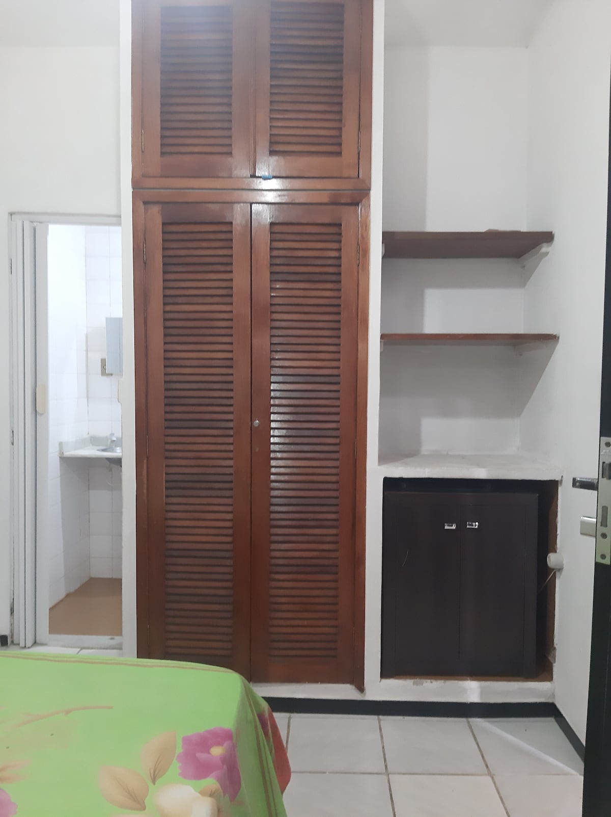 Flat privativo com área de piscina e churrasqueira compartilhadas. A 200mts do Oceanario e praça de Eventos da Orla de Atalaia. Flat tem 01 quarto com 01 cama casal, 01 cama solteiro. Ar-condicionado em horário controlado, das 19h às 9h. Possibilidade de taxa extra de R$30,00/dia para uso em horário livre. Ventiladores livre para sala e quarto.Wi fi grátis. TV. Cozinha privativa equipada. Banheiro privativo. Roupa de cama e toalha Possibilidade de pagamento para 01 cama extra individual.