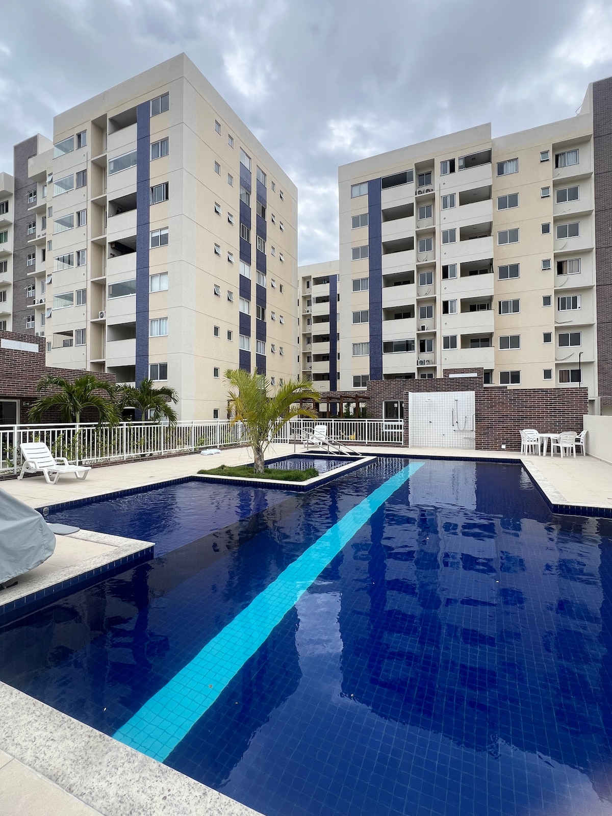 Apartamento 2 quartos com ar condicionado, sendo 1 suite com tv smart Sala com ventilador e tv smart e sofá cama, cozinha e varanda gourmet toda equipada, lavanderia com máquina de lavar. O prédio dispõe de portaria 24h com reconhecimento fácil, garagem privativa para 1 carro, academia, salão de jogos, brinquedoteca, sala de yoga, piscina adulto e infantil, quadra de areia com área goumert, cinema e sala home office Voltagem 110v