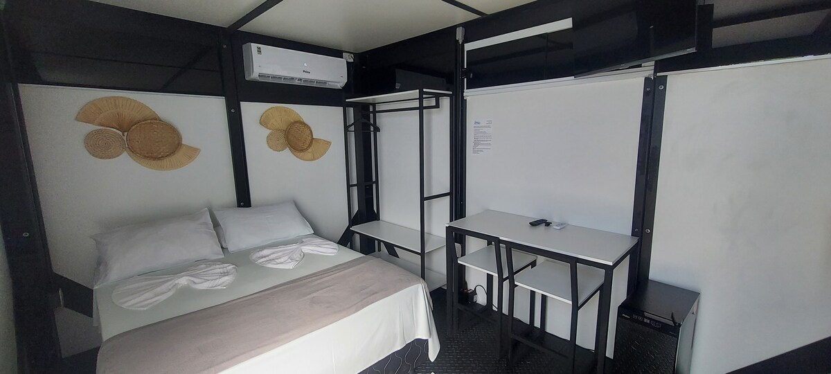 PRIVATIVO (2 pessoas) É o quarto mais intimista e feito para aqueles que gostam de privacidade, sem perder a experiência de uma vivência em um Hostel. Comporta até 02 (duas) pessoas em um beliche. Conta com ar-condicionado, Wi-Fi, jogo de cama, cobertores, toalhas e café da manhã incluídos no valor do dia a dia.