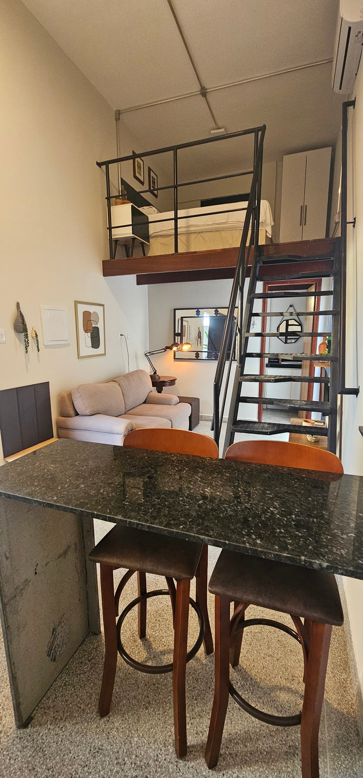 Este lugar único tem um estilo próprio. Devidamente projetado para receber hóspedes do Airbnb com conforto, praticidade e estilo. O loft em estilo industrial foi especialmente pensado para receber pessoas com um estilo moderno e descoladas. Localizado dentro do condomínio com toda segurança e tranquilidade possui internet de alta velocidade, smart tv, forno de microondas, fogão elétrico e demais facilidades para cozinha, Roupas de cama super confortáveis e uma cama com visão perfeita!