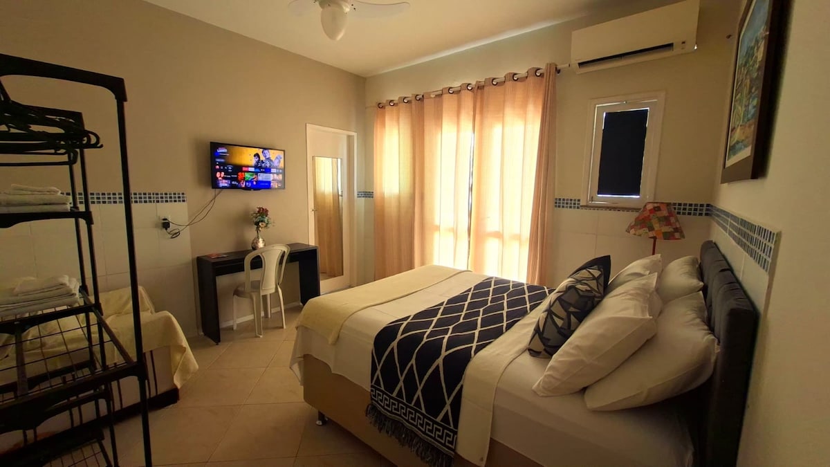 O apartamento é totalmente mobiliado e pensado para oferecer conforto e praticidade. Conta com ar-condicionado, TV Smart, Fogão elétrico, air fryer, utensílios e panelas — tudo pra você se sentir em casa. Localizado a 500m da Orla de Atalaia, o espaço acomoda confortavelmente até três pessoas, sendo perfeito para casais, amigos ou famílias pequenas que querem descansar, curtir e aproveitar o que Aracaju tem de melhor. Cobramos energia proporcional- kwh - R$1,00