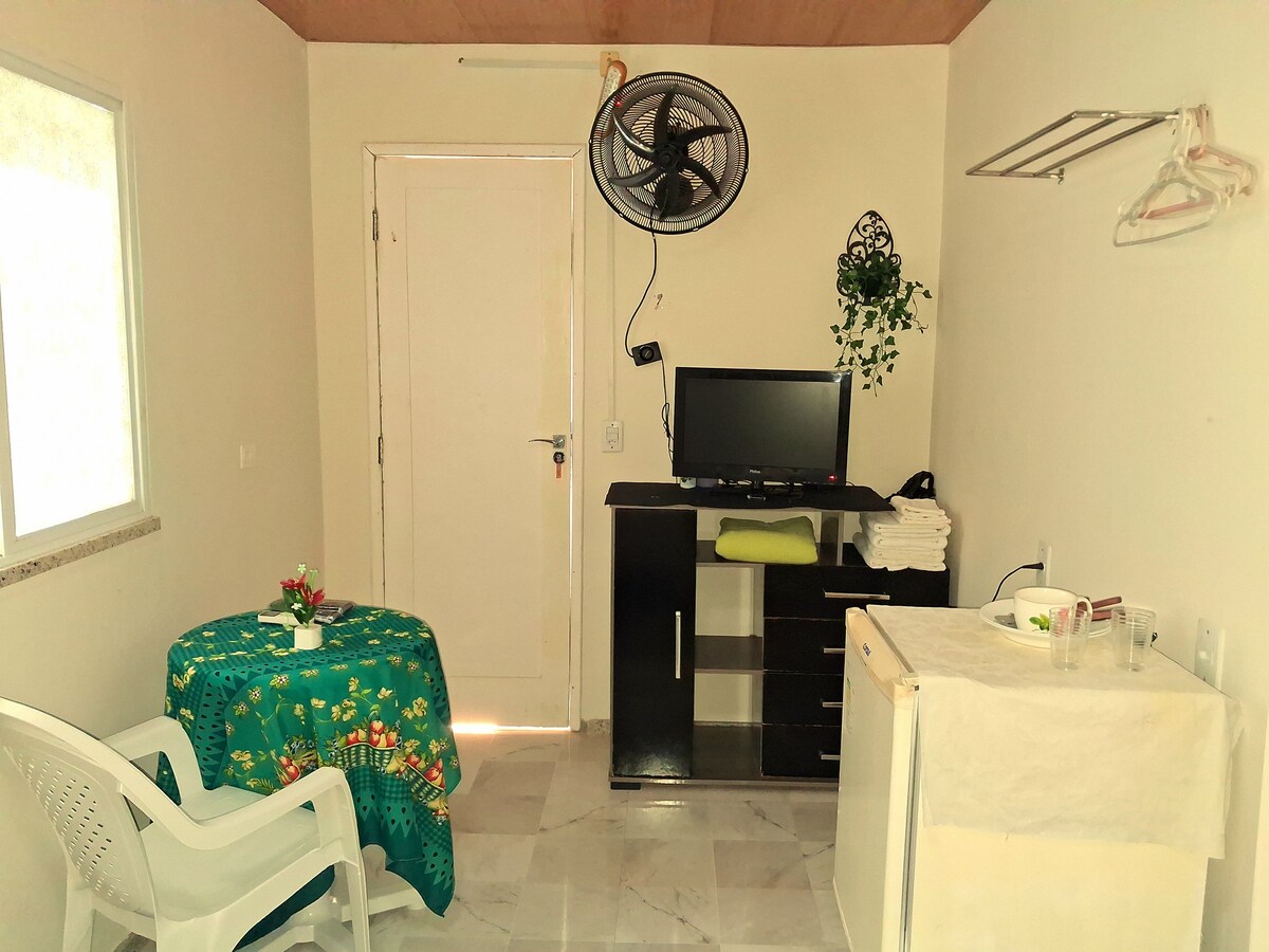 • Quarto suíte em Kitnet no fundo de minha casa. • Hospedagem simples, mas tudo muito limpo e organizado. • Localizado em bairro residência e com tudo próximo, supermercado, farmácia, restaurantes… • Ideal para estudantes, concurseiros e pessoas que buscam algo “apenas para dormir” •Hospedagem livre de machismo, racismo e LGBTfobia • * Lençóis e toalhas * Banheiro privativo * 1 quarto * Chuveiro elétrico * Não tem TV -GELADEIRA - FOGÃO * ACEITAMOS SEU PET *Ventiladores