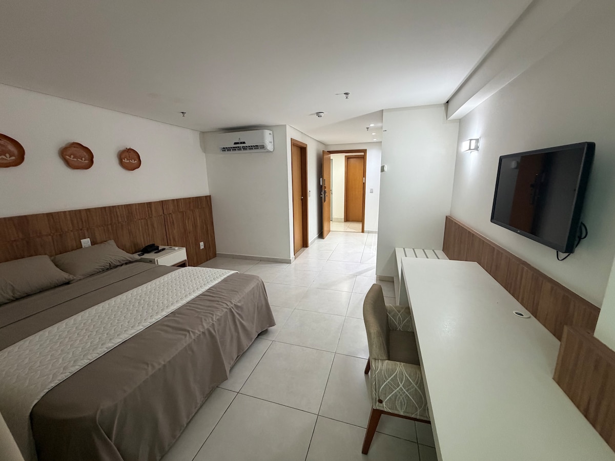 Descanse em um espaço clean, tranquilo e climatizado. Apartamento compacto e completo, ideal para quem busca conforto e praticidade. Localização privilegiada: a 1 km da Av. JK, 6 min do Capim Dourado e a poucos metros da Praia da Graciosa. Check-in remoto para sua comodidade.