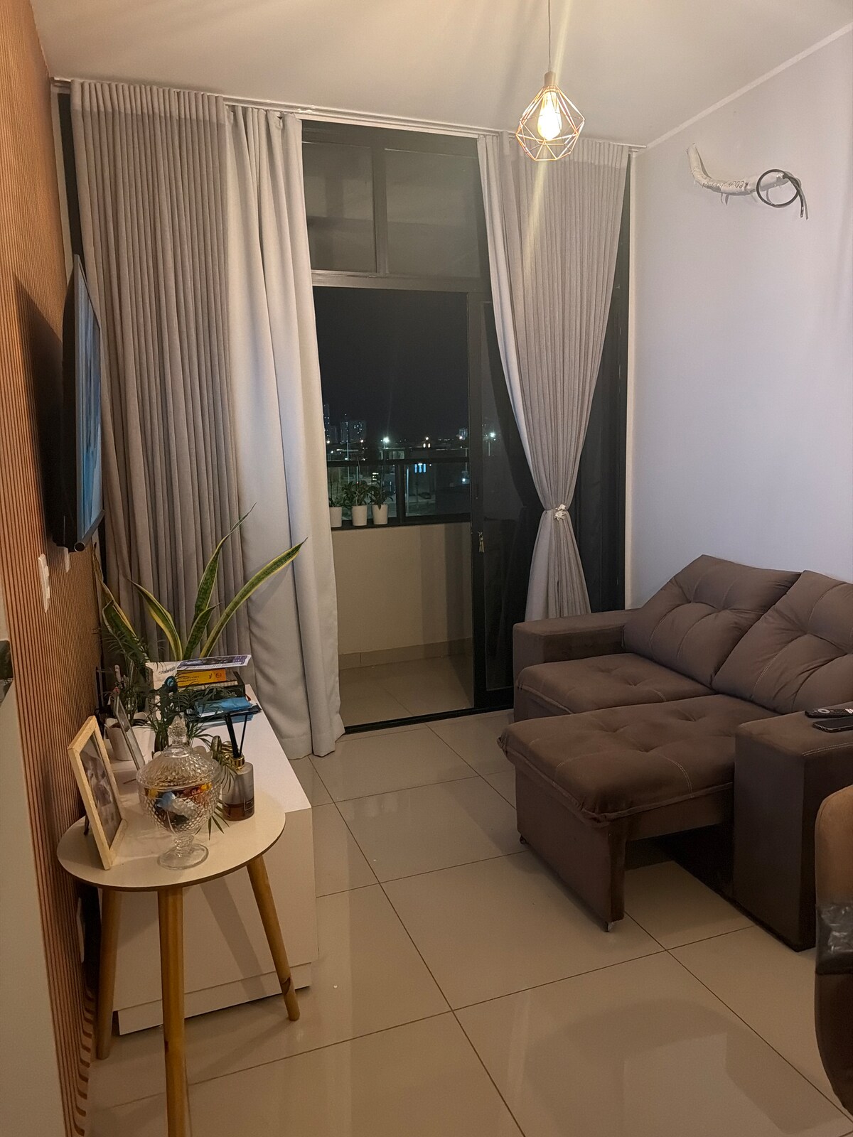 Apartamento aconchegante e bem decorado, perfeito para trabalho ou turismo, em família ou sozinho. Equipado com ar-condicionado em todos os cômodos, iluminado, fica no último andar e oferece uma vista incrível do Lago de Palmas com pôr do sol maravilhoso. Condomínio silencioso e prédio com elevador. Localização excelente: a 10 minutos a pé da Praça dos Girassóis, próximo ao Parque dos Povos Indígenas, e a apenas 5 minutos de carro do Capim Dourado Shopping e da UFT.