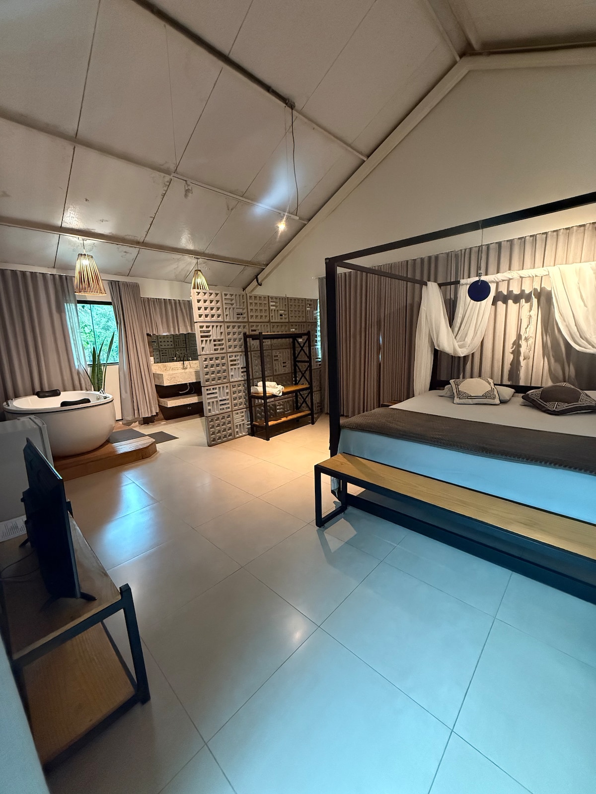 Cabana aconchegante no Bosque dos Buritis, cercada pela natureza e com total privacidade. Um refúgio ideal para casais e momentos especiais, combinando romantismo, conforto e tranquilidade. O espaço é moderno, bem iluminado e com ambientes integrados, incluindo quarto confortável, cozinha equipada e banheiro elegante. A área externa conta com piscina privativa, perfeita para relaxar e aproveitar o clima do bosque em total silêncio e conexão com o verde.