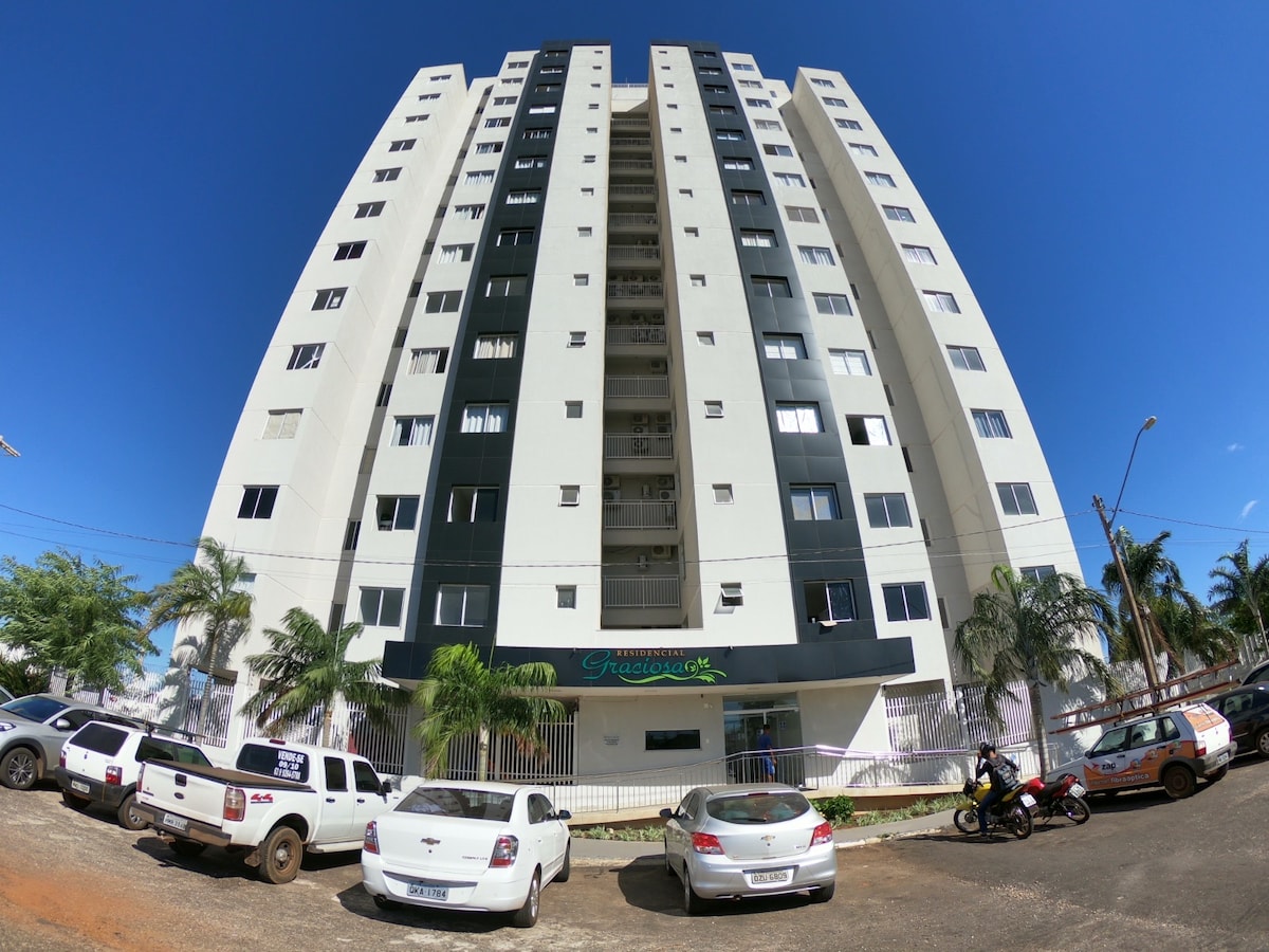 Sua família vai estar perto de tudo ao ficar neste apartamento localizado na Orla da Praia da Graciosa. Totalmente mobiliado e decorado, iluminação especial. Todos os ambientes são climatizados, sala e nos dois quartos, com blackout e cortinas. Você estará a 300 metros da Orla da praia, ao lado da Academia Hitt, a 1km do shopping Capim Dourado, a 1,5km do centro de Palmas, próximo de farmácia, posto de gasolina, bares e toda gastronomia da Orla, a 1 km da UFT/UNITINS, e a 3km da Praia do Prata.