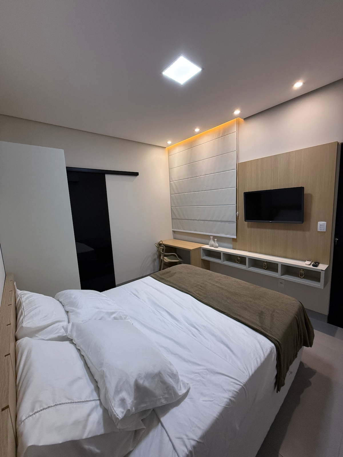 Este estúdio premium é perfeito para quem busca conforto e privacidade. Ambiente decorado e equipado, para promover uma experiência especial, seja para descanso, lazer ou negócios. Aqui você encontra um ambiente moderno, climatizado e ainda pode desfrutar de um revigorante banho de piscina.