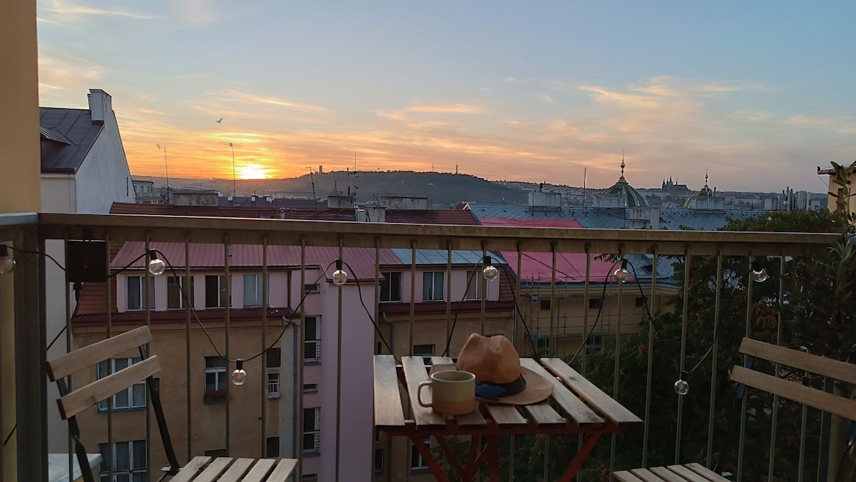 You found cute place made with love to sunsets & comfortable and easy living :) - amazing point between Old and New Town: 100 m to Wenceslas Square, easy access to all tourist attractions, metro A, B, C, trams on one side & close to the local areas with a lot of restaurants (with good beer and prices) on another - entire place will be yours, including private balcony with great view of sunsets - TV - fast WiFi - 6th floor WITH elevator - renovated in 2023 - fully equipped kitchen - self check in