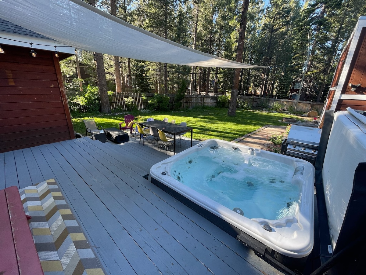 The Tahoe House is a 1400+ sq. ft. 3 bedroom 2 bathroom mountain home with a 1-car garage and private hot tub conveniently located in close proximity to everything Lake Tahoe has to offer! Spend the day on the slopes and then come back for a soak in the hot tub, complete with cozy white spa robes. Spend the evening cooking up dinner in the well equipped kitchen or relaxing and playing board games in the living room around the gas fireplace. Experience Lake Tahoe living at it's finest!