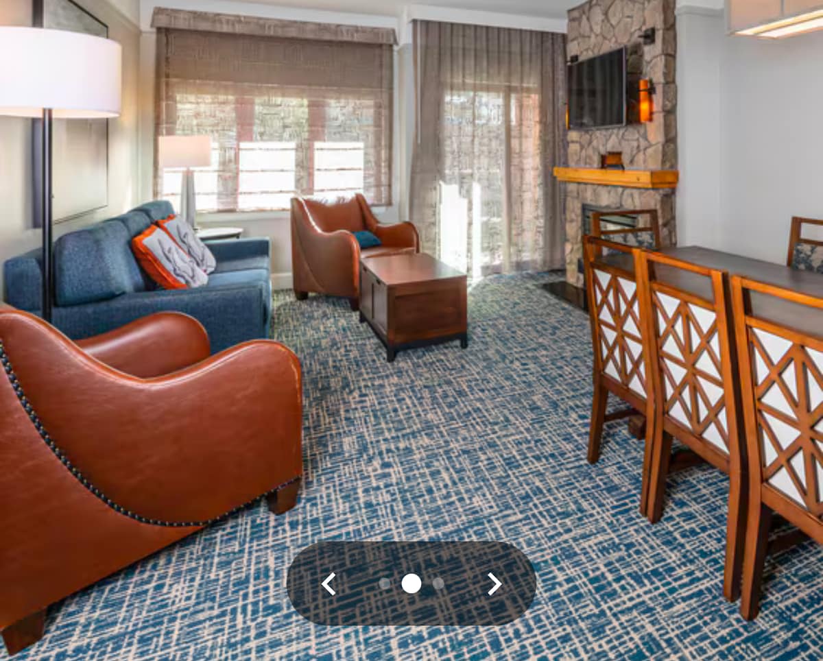 Read entirely before booking. Luxury Marriott studio with queen bed for 2 and padded chair. Extra people are allowed to provide their own sleeping space on the floor if desired. Marriott will not supply additional bedding. Full kitchen. with dining table for 2. Hot tubs, heated pool, skate, hike, ski, sauna, workout, relax by the fire. World class Marriott accommodations. You are required to pay a $130 cleaning and parking fees at check out. Your booking means that you agree to this.